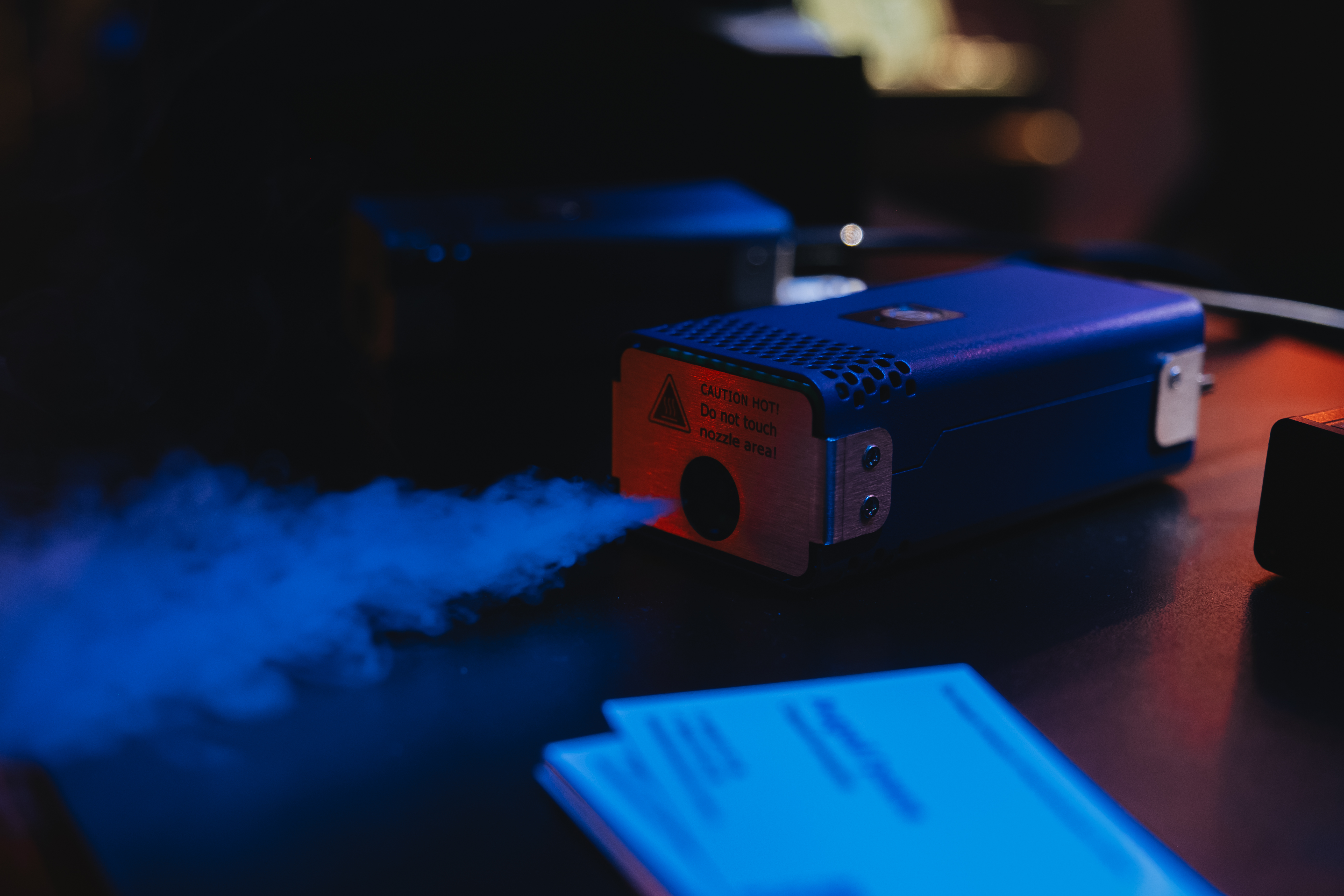 Среди экспонатов выделялись генераторы дыма и тумана LookSolutions, которые зарекомендовали себя как надежные и высококачественные устройства для создания эффектов, способных преобразить любое пространство.