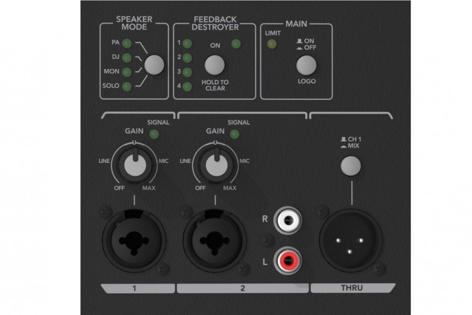 - Система предусматривает четыре функциональных режима работы для самых разных условий (PA, DJ, MON, SOLO).