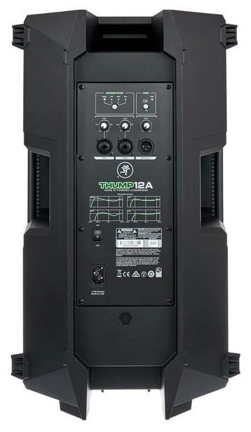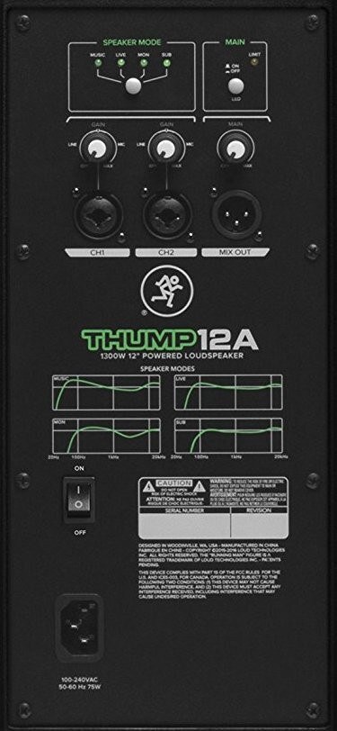 На задней панели находится трехполосный эквалайзер и ручка громкости, а внутри кабинета - активная электроника Mackie, работающая на оптимизацию звучания АС. Для коммутации доступен 1 комбинированный вход - микрофон/линия. Корпус кабинета сделан из ударопрочного полипропилена. Есть гнездо для установки на стойку. Размеры кабинета акустической системы составляют (Ш/В/Г) 367 x 596 x 314 мм, вес - 11,6 кг.