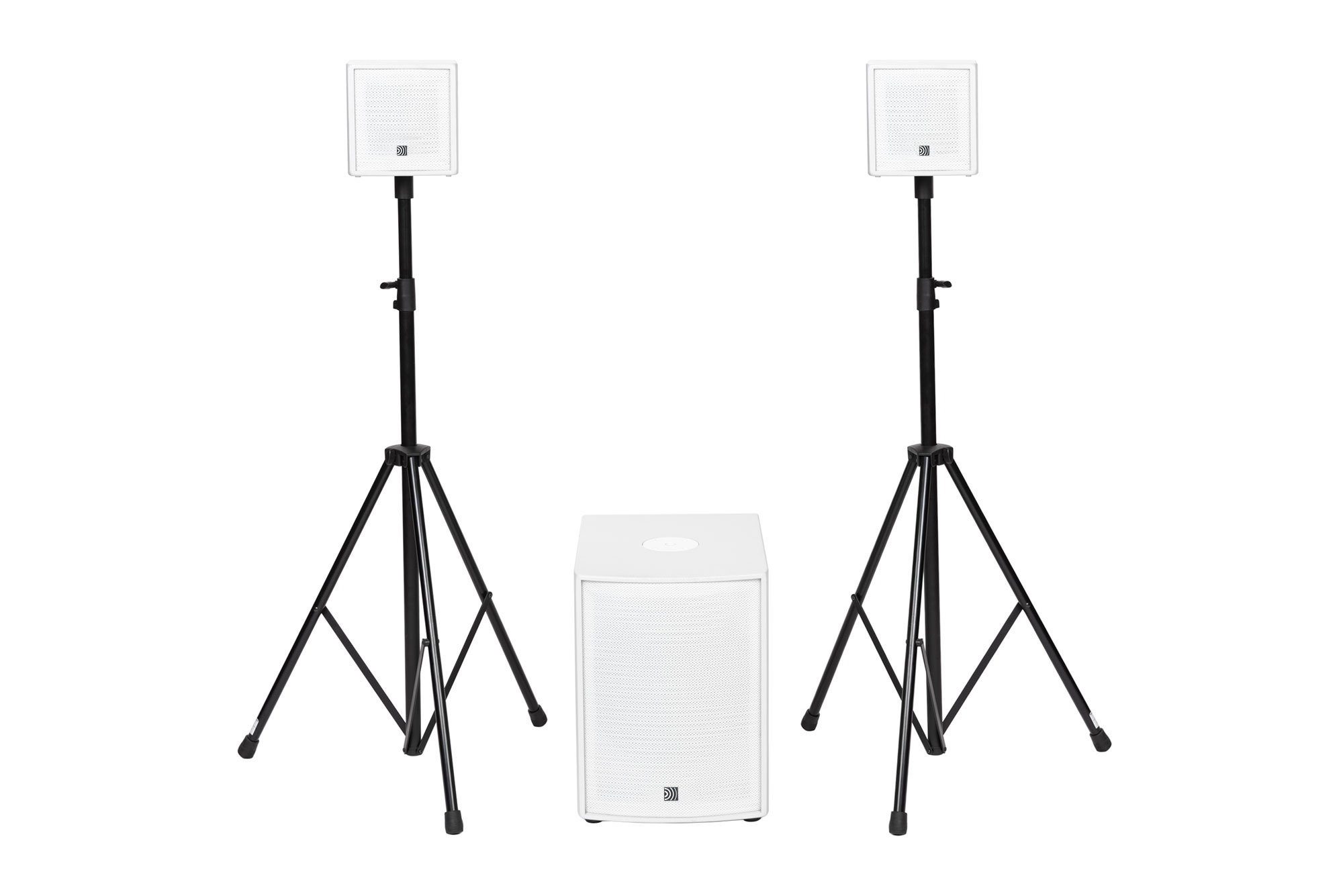 DS Proaudio ANT WH Активный акустический комплект 1000 Вт, состоящий из двух  6” сателлитов и одного сабвуфера 12”. встроенный DSP (x-over, delay, PEQ x9, limiter). Стойки/кронштейны в комплект не входят. Исполнение в БЕЛОМ цвете