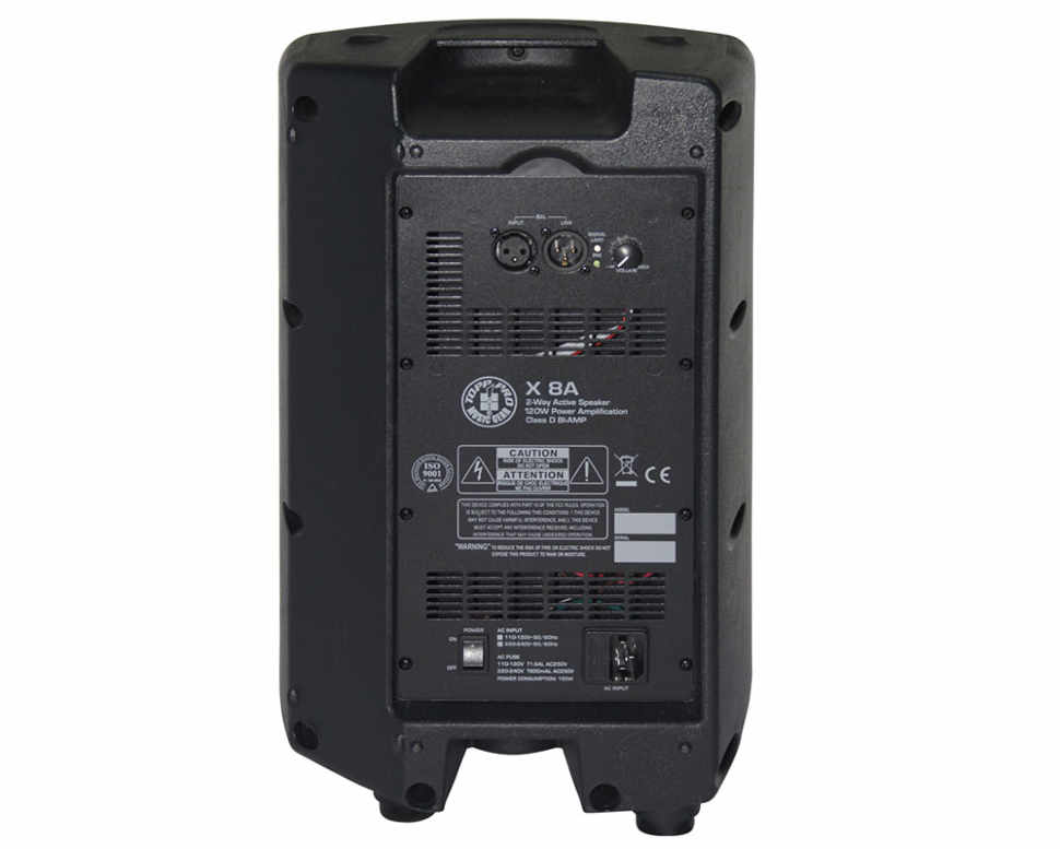 TOPPPRO X8A Активная двухполосная пластиковая акустическая система, 8" динамик, 1” HF компрессионный драйвер, 68Hz-20KHz , 240/480Вт, 113dB , 420 x 270 x 240 мм, 5.532 кг. Корпус пластик Стакан 36 мм