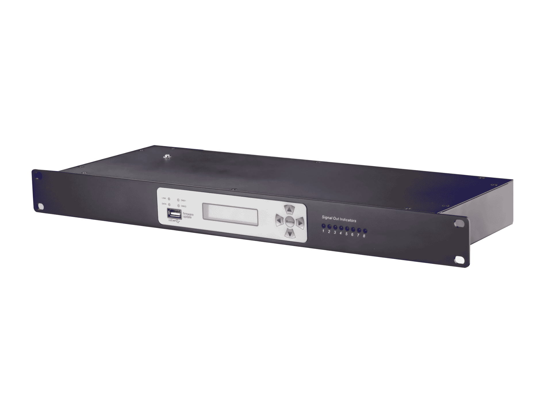 Конвертер DMX сигнала ArtNet-DMX. Ethernet порт, 1 RJ45 вход 1 RJ45 Thru, 2 DMX входа, 8 DMX выходов, с оптической развязкой. LCD экран, меню настроек. 5 индикаторов сигнала. USB Port для обновления прошивки. Потребление 6 Вт. Габариты: 482 x 168 x 44 мм. Вес: 2.2 кг.