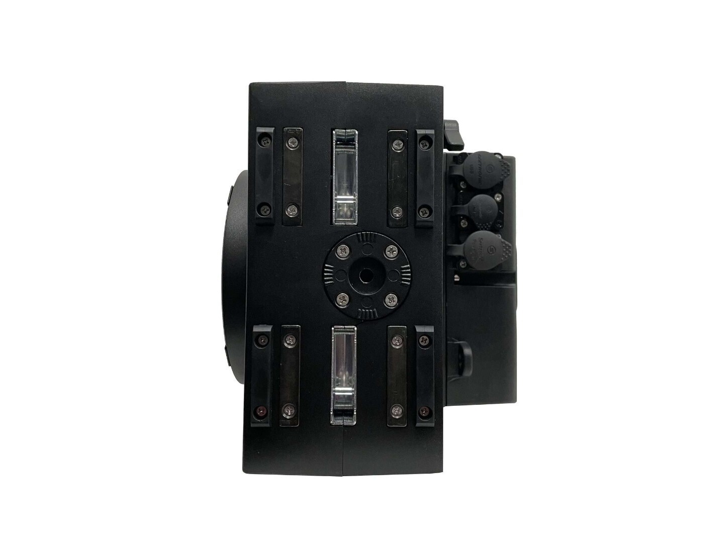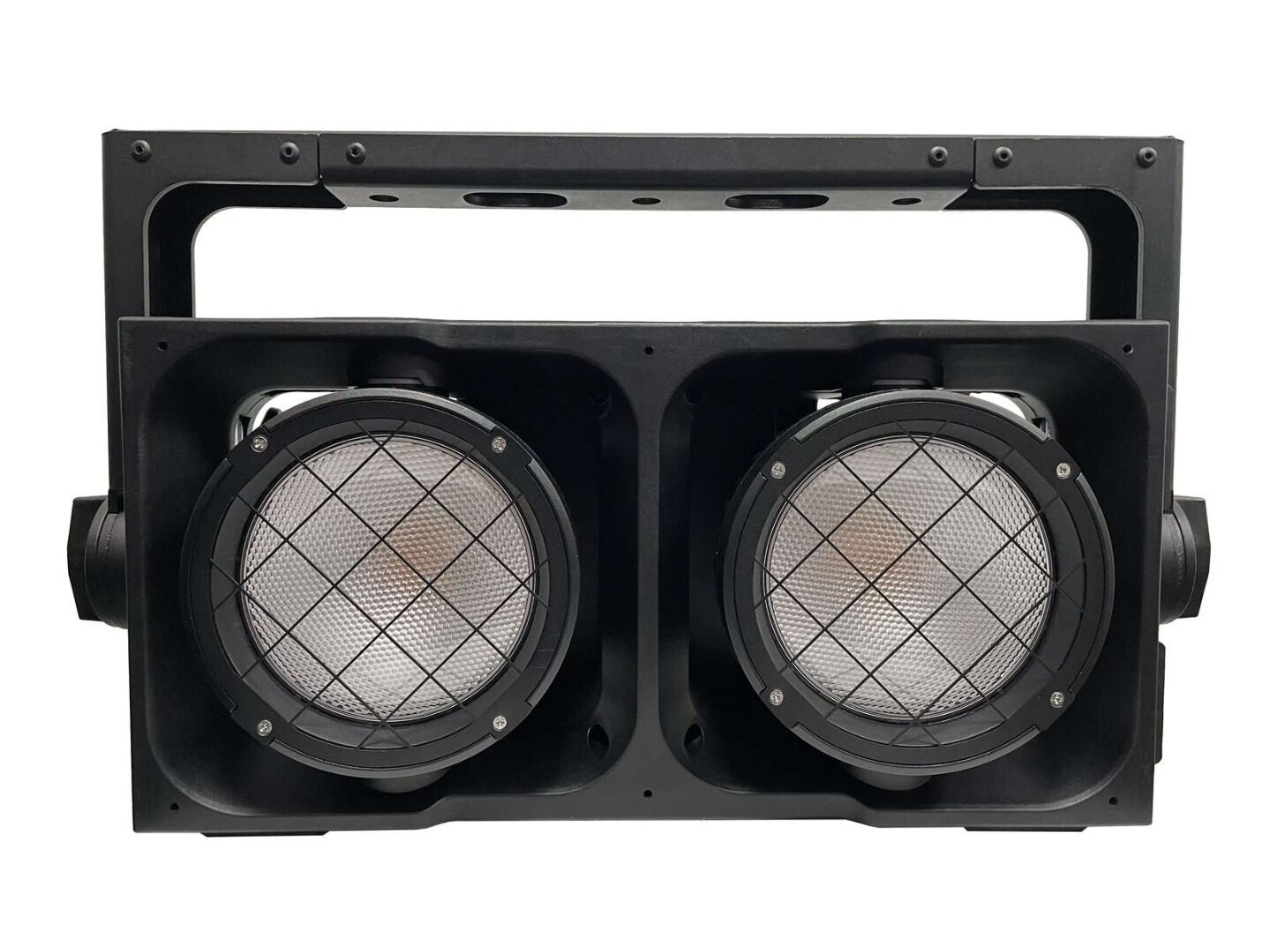 Профессиональный, влагозащищённый блайндер. Источник света 2 светодиода по 300 Вт, 3 в 1. (Warm white+amber +red). Управление DMX512: 1/ 2/4/5/7/10/13. Угол раскрытия луча 65 градусов, CRI95 . Питание 100-240В, 50/60Гц. Активное охлаждение с автоматической регулировкой оборотов. Встроенные замки для соединения приборов между собой стык в стык. Степень влагозащиты корпуса IP65. Габариты 502 × 288 × 195 мм. Вес 9 кг.5
