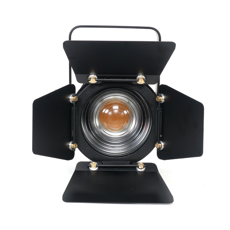 Прожектор с линзой Френеля. Источник света двуцветный светодиод 100Вт (Cold White + Warm White), CRI>90. Потребление 100Вт. Зум ручной от 15 до 50 градусов. Управление по DMX 2/5 каналов. Охлаждение активное. Вес прибора 5,39кг. Вес прибора в коробке 6,5кг. Габариты в коробке 420 х 320 х 300мм. Кашетирующие шторки в комплекте.