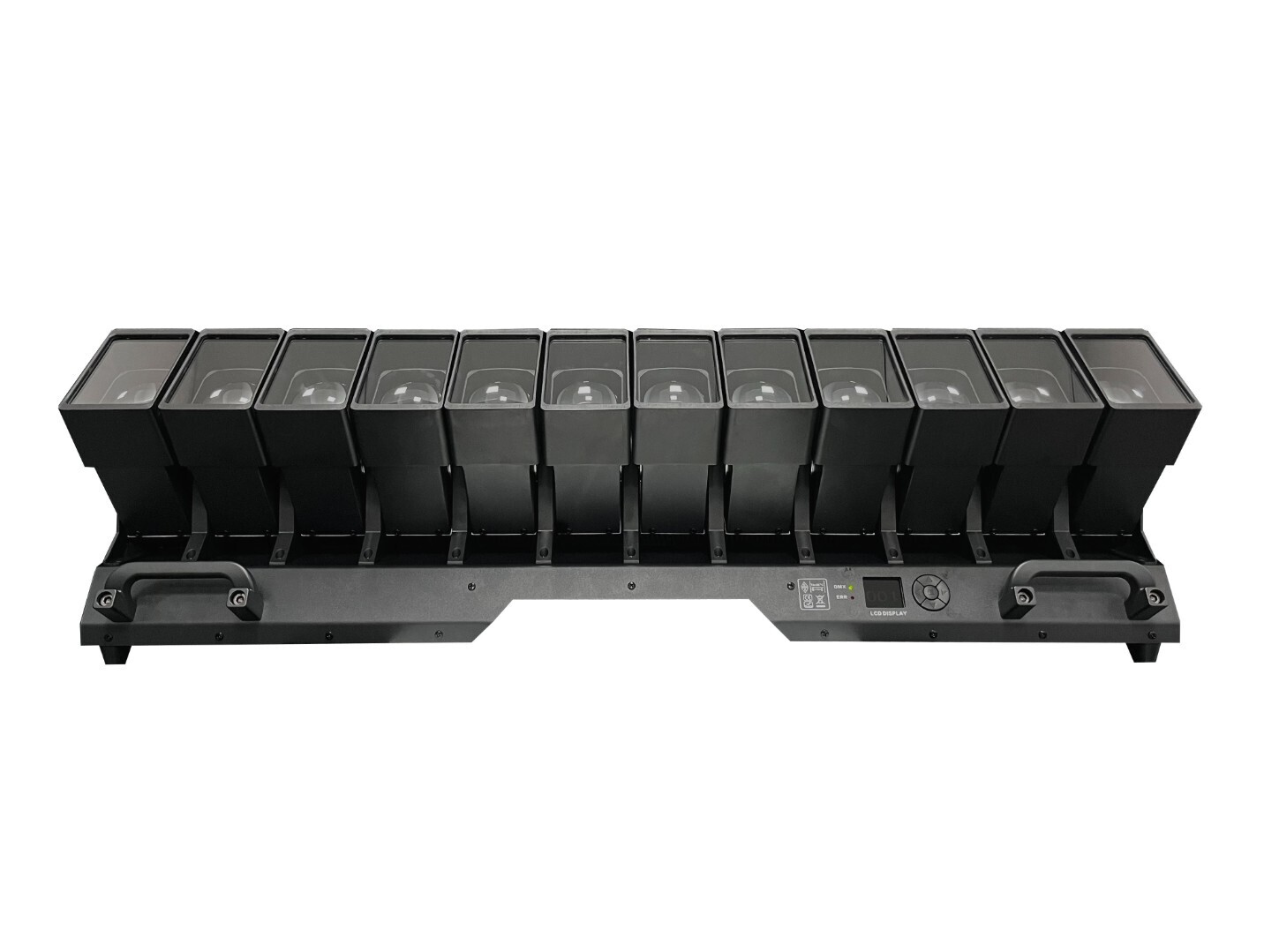 Источник света 12 cветодиодов мощностью 60 Вт. Угол раскрытия луча 4 -55°. Цветосмешение RGBW. Tilt 180° (раздельное управление источниками). Потребляемая мощность: 800 Вт. Управление: DMX 7/14/16/35/60/73/82/84 каналов, автоматический режим, master/slave, RDM. Встроенные эффекты. Степень влагозащиты IP20.