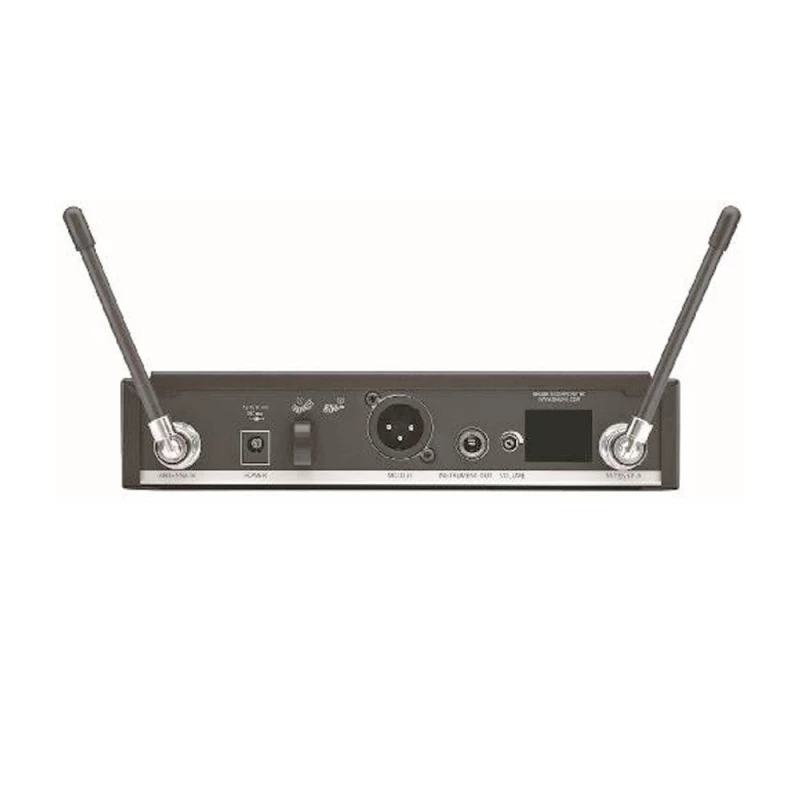 В комплекте поставляется блок питания, две батареи АА, набор для монтажа приемника в рэк, две съемные антенны, держатель для микрофона и чехол на молнии для хранения и переноски. Благодаря использованию технологии QuickScan система быстро находит наилучшую для передачи сигнала радиочастоту из доступных, устанавливая надежную связь приемника и передатчиков. Для коммутации предусмотрены разъемы 1/4 джек и XLR. Передатчик работает от батарей АА 1,5 В, время непрерывной работы – до 14 часов. Для контроля заряда батареи имеется наглядная индикация. Система неприхотлива к внешним условиям и может работать при температуре окружающей среды от -18 до +50 градусов. Рабочий диапазон радиочастот представленной модели радиосистемы - M17, от 662 МГц до 686 МГц.