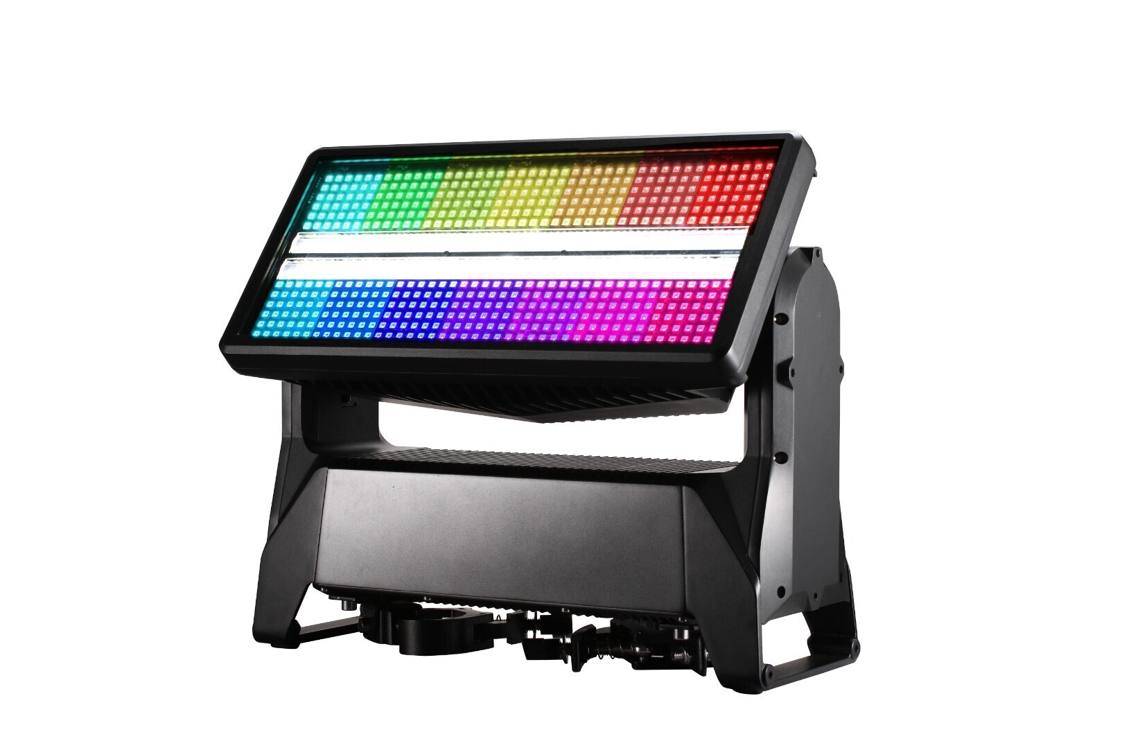 Светодиодный стробоскоп с сегментным управлением и функцией Wash. Источник света: 208 шт (28 сегментов) белых 5Вт Cold White и 504 шт (14 сегментов) по 1.5 Вт RGB светодиодов. Управление по DMX, , RDM, Art-Net, sACN (8 /18 /25 /95 /8 /11 /13 /24 /30 /47 /68 /74/ 97) каналов, автопрограммы. Угол раскрытия луча 120°. Частота стробирования до 20 Гц. Разъёмы управления DMX вход\выход: XLR 3-Pin или 5-Pin (опционально). Разъёмы управления Art-net вход\выход: RJ45. Разъёмы питания вход \ выход: PowerCON True. Степень защиты корпуса и разъемов IP 65. Большое количество предустановленных программ. Максимальное потребление 1800 Вт. Движение по TILT 185°. Габариты 482 х 178 х 243мм. Вес 13 кг.