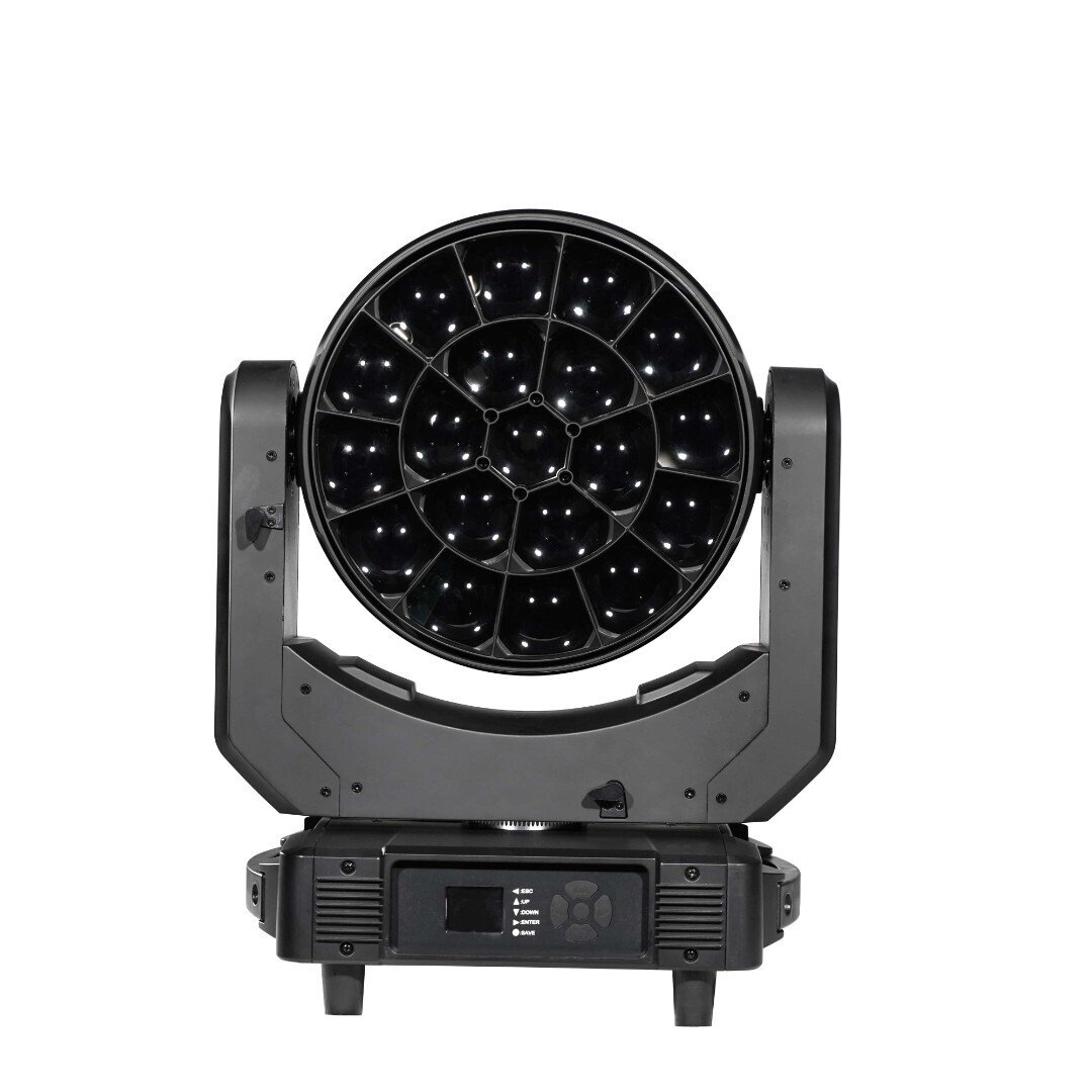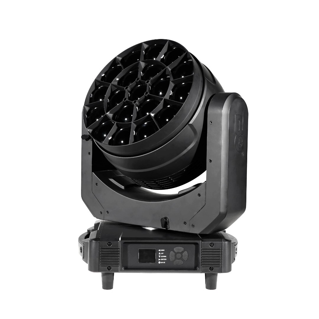 Вращающаяся голова Wash с сегментным управлением и мультицветными светодиодами 7 в 1 (Red\красный, Green\Зелёный, Blue\Синий, White\Белый, Lemon\Жёлтый, Amber\Амбер, Cyan\Циан, Purple\Фиолетовый). Источники света 19 светодиодов RGBLACP по 60 Вт каждый. Zoom: от 4,5° до 43° Димер 0-100%. Строб 0-25 вспышек в секунду. Управление: DMX512 (20/ 28/ 30/ 38/ 39), звуковая активация, автоматический режим, master/slave. Вращение Раn : 540°; Tilt 270°. Разъёмы питания Powercon, управления XLR 3 pin, Art-net (RJ45) опционально. Потребление: 950Вт. Габариты: 421 х 315 х 448. Вес: 21.2 кг.