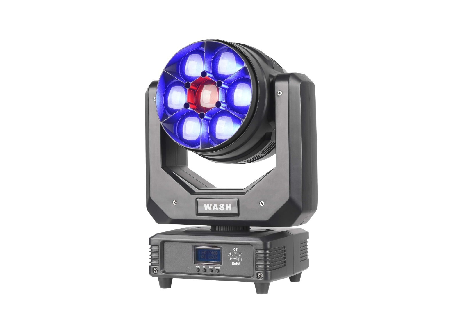 Вращающаяся голова Wash с попиксельным управлением и функцией B-EYE. Источник света 7 по 40 Вт светодиодов RGBW. Zoom: линейный от 3,5°до 45°. Вращение Раn : 540°; Tilt 270°. Электронный диммер 0-100%. Управление: DMX 21/24/32/60 каналов, звуковая активация, автоматический режим, master/slave. Питание: 100-240В 50/60Гц. Потребление: 250 Вт. Габариты: 258 х 178 х 343 мм. Вес: 5,6 кг.