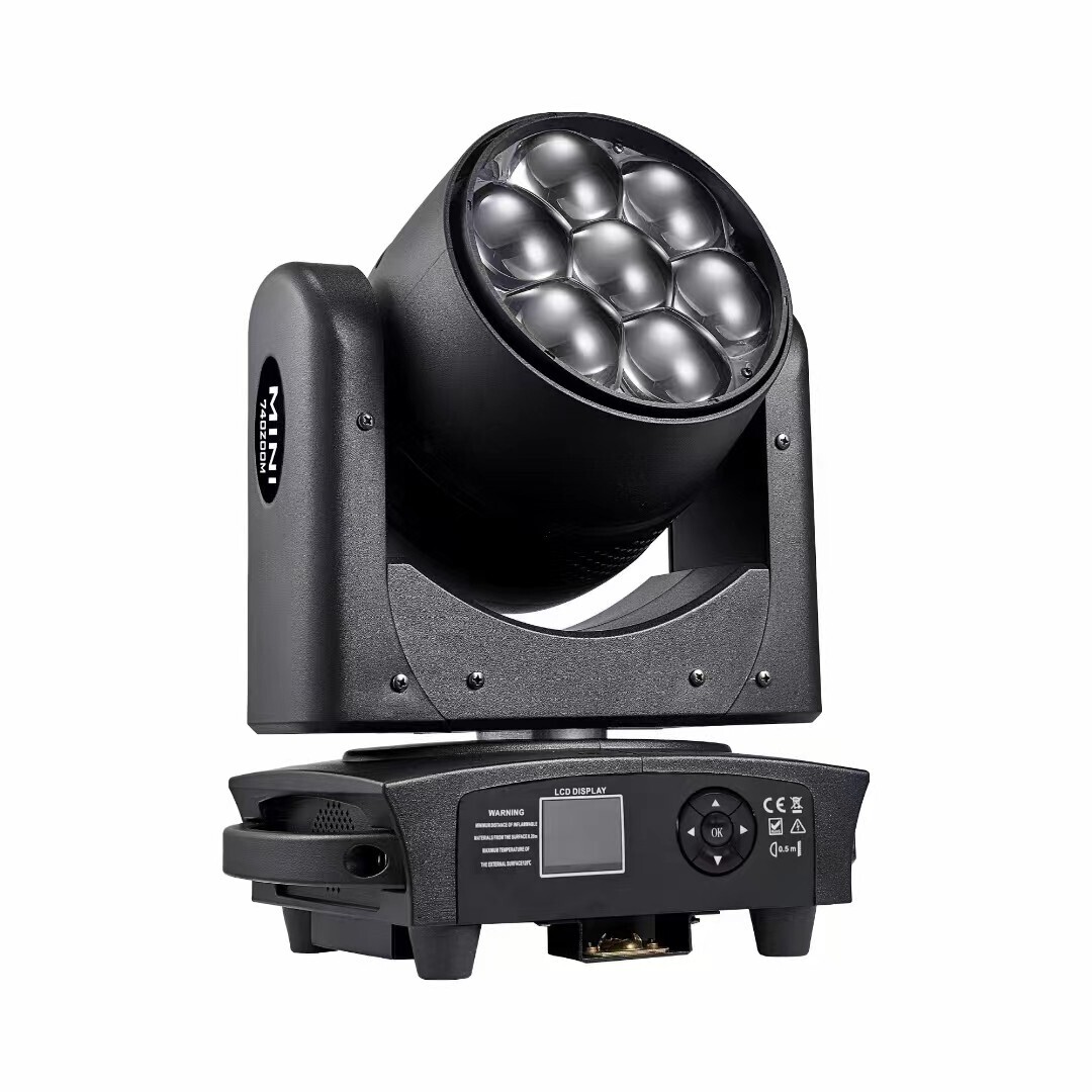 Вращающаяся голова Wash. Источник света 7 по 40 Вт светодиодов RGBW. Zoom линейный от 4,5° до 45°. Вращение Раn : 540°; Tilt 270°. Электронный диммер 0-100%. Управление: DMX 17/21/21/29 каналов, звуковая активация, автоматический режим, master/slave. Питание: 100-240В 50/60Гц. Потребление: 350 Вт. Габариты: 186 х 220 х 346 мм. Вес: 6,5 кг.