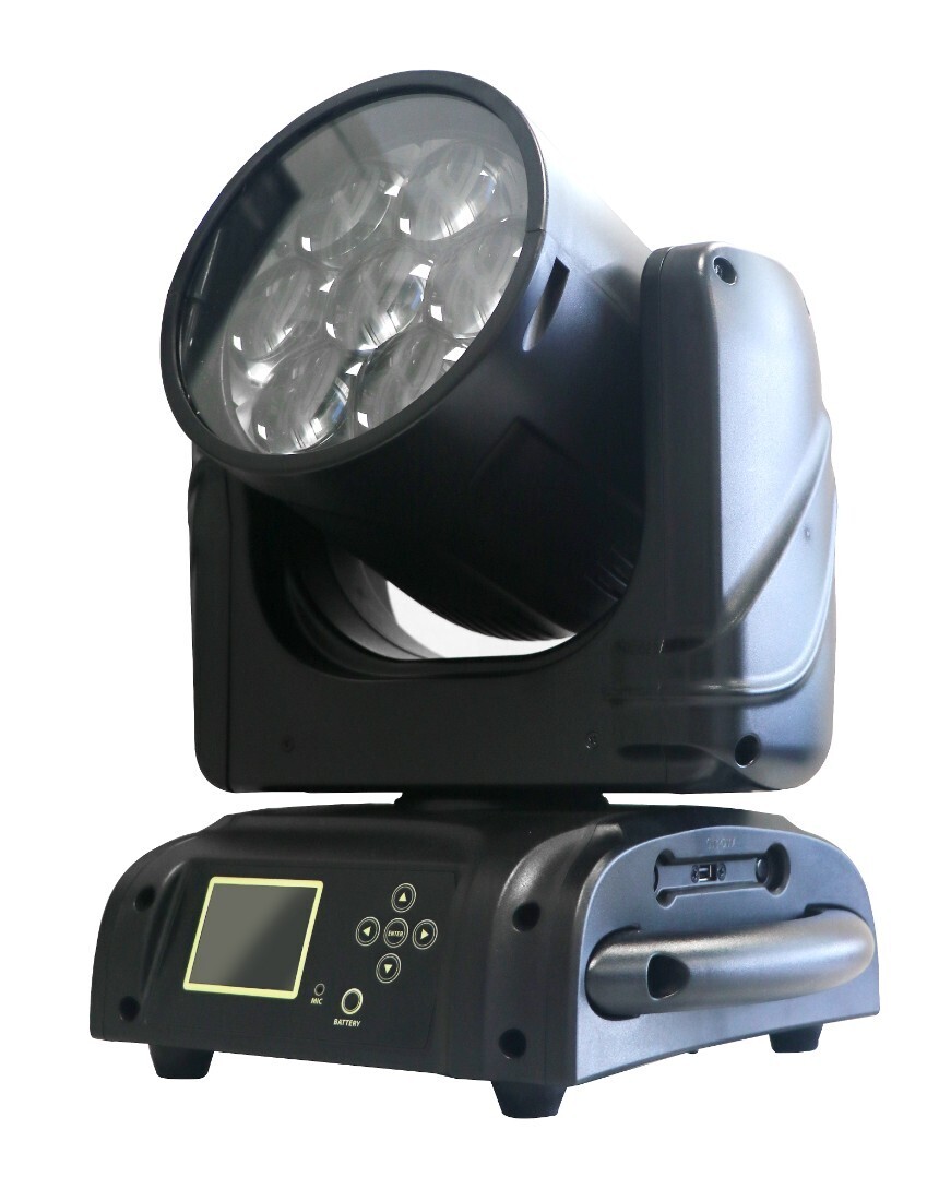 Вращающаяся голова Wash. Модель Wizor III с высоким CRI. Zoom: от 6° до 53°, 7 светодиодов RGB+WW OSRAM по 40 Вт каждый. Попиксельное управление светодиодами. Вращение Раn : 630°; Tilt 265°.Димер 0-100%. Строб 0-25 вспышек в секунду. Управление: DMX512 (18/25/37/28/21), звуковая активация, автоматический режим, master/slave. Режим гибернации при потере DMX сигнала. Автоматическая регулировка вентиляторов охлаждения. Потребление: 260Вт. Габариты: 286 x 245 x 372 мм. Вес: 7,4 кг.