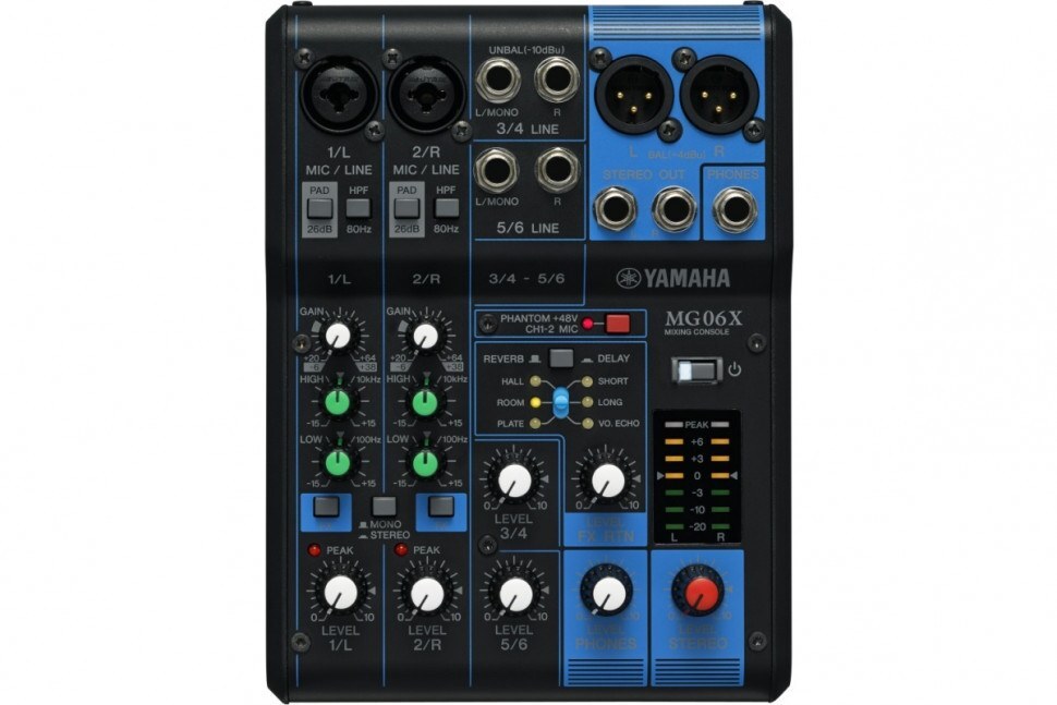 Универсальный микшерный пульт YAMAHA MG06X имеет небольшие, компактные размеры, но при этом очень обширный функционал. Он отлично подойдет как для работы в домашних условиях, так и для работы на сцене. Микшерный пульт имеет шесть рабочих каналов, два микрофонных и шесть линейных входов. Также имеются микрофонные предусилители А-класса, которые стоят на инверторной системе Дарлингтона вместе с высококачественными операционными усилителями M01. Гаджет оснащен всеми необходимыми выходами и разъемами, как для кабеля, так и наушников. Микшерный пульт YAMAHA MG06X на высококачественном встроенном процессоре эффектов SPX с 6-ю программами. Также есть индикаторы пикового уровня, двухполосный эквалайзер hi-pass типа. Пульт заключен в прочный металлический корпус.