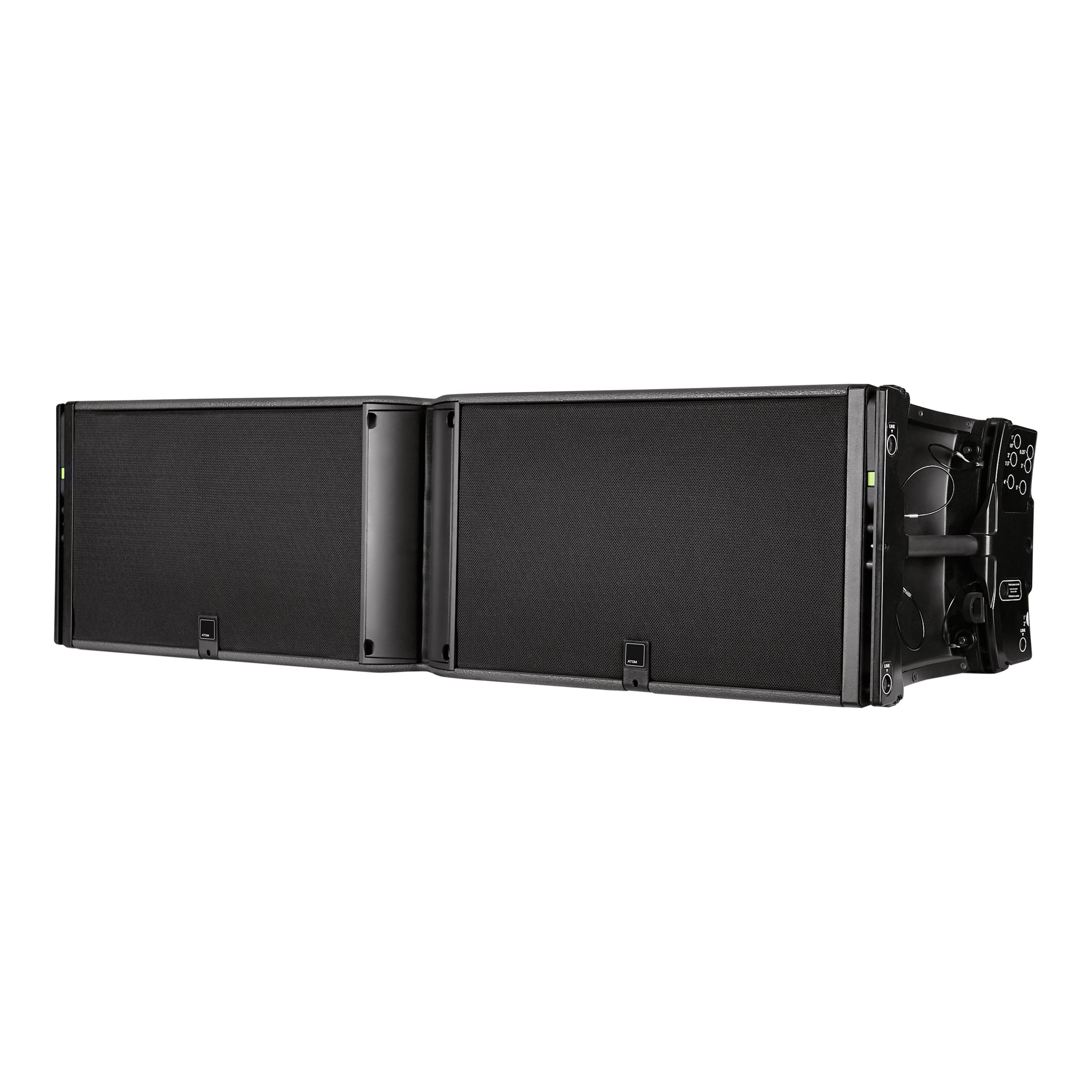 Колонка среднего формата Atom Alpha 4, но характер звучания как у большого массива. Хорошо работает на дистанции не требует использования подвесных сабвуферов. Очень удобная система подвеса.