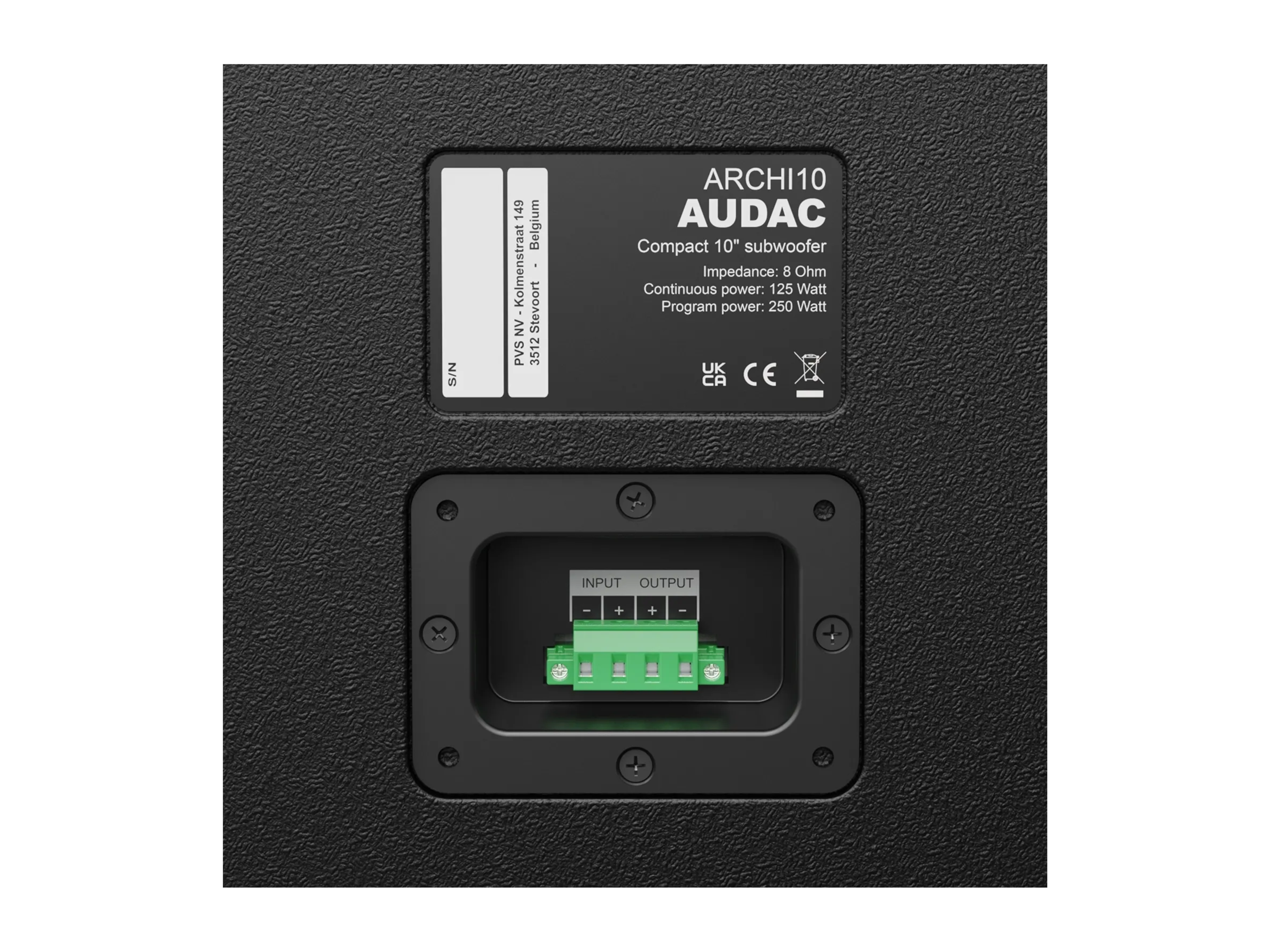 ARCHI10/B - компактный 10-дюймовый архитектурный сабвуфер. НЧ: 10". Сопротивление: 8 Ом. Номинальная мощность (AES) - 225 Вт. Цвет: Черный.
