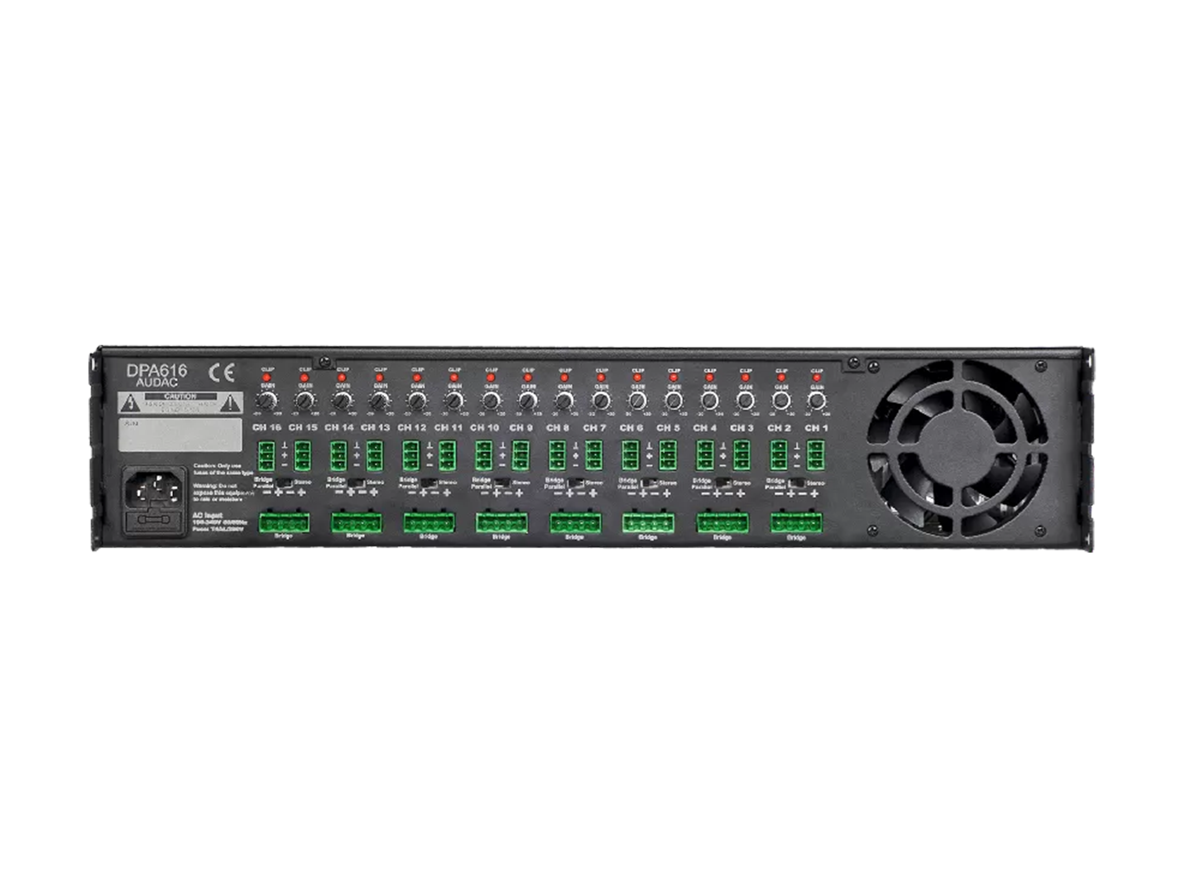 AUDAC DPA616 - 16-ти канальный низкоомный усилитель класса D, идеально подходящий для создания многозонных звуковых систем. Мощность (@4 Ом): 16 x 60 Вт.