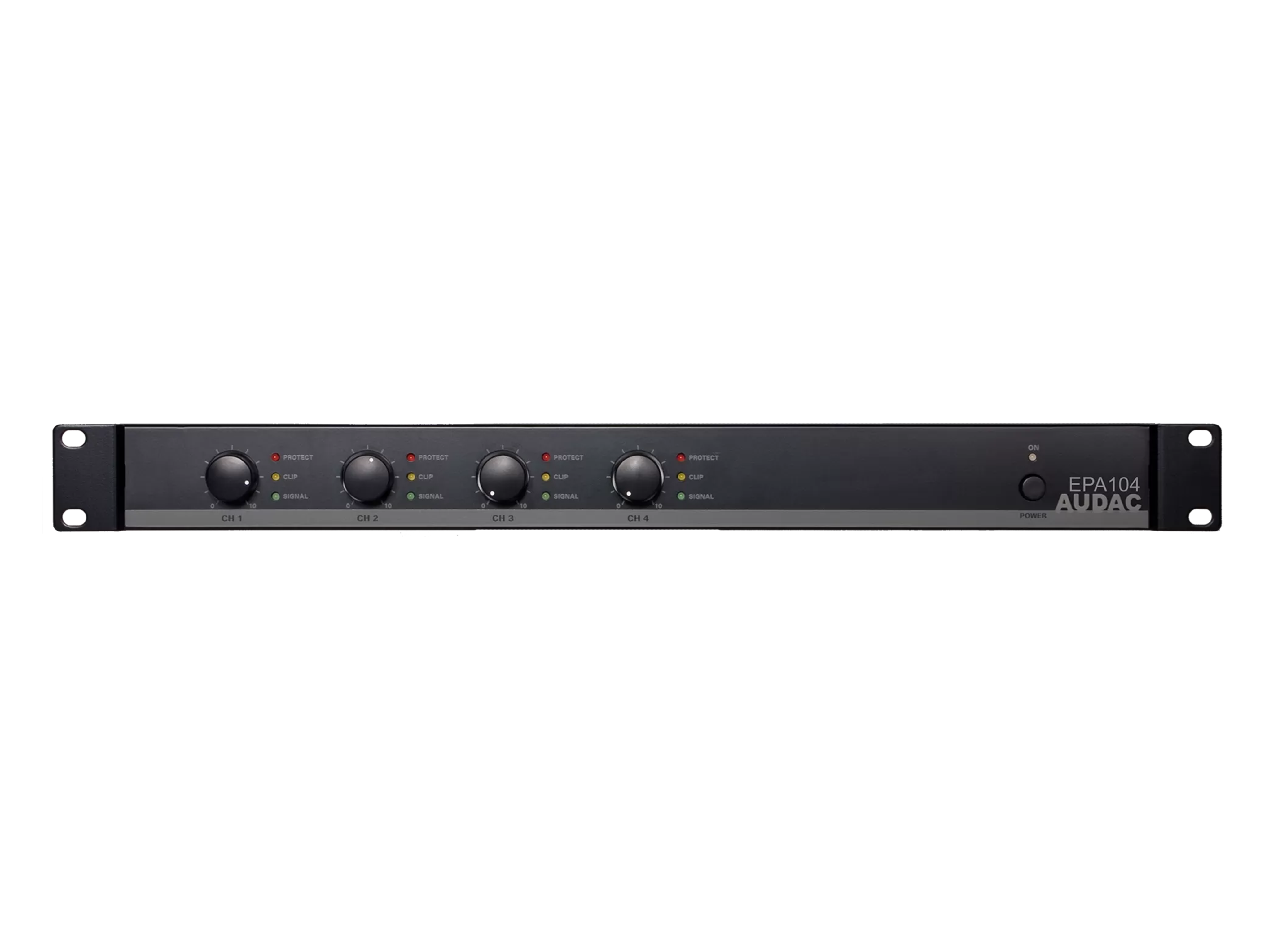 AUDAC EPA104 - четырехканальный низкоомный усилитель класса D, с пассивным конвекционным охлаждением. Мощность (@4 Ом): 4 x 100 Вт.