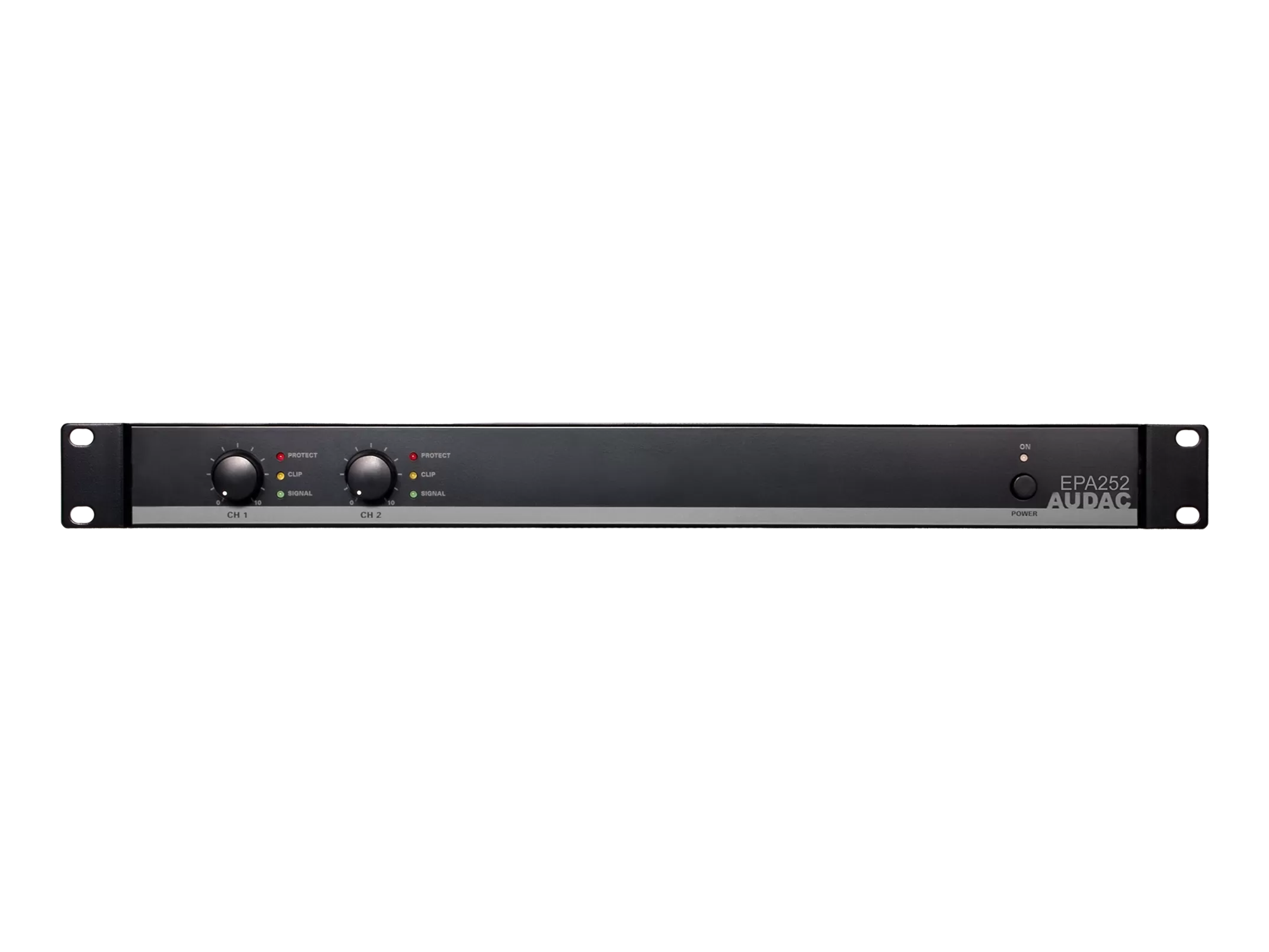 AUDAC EPA252 - двухканальный низкоомный усилитель класса D, с пассивным конвекционным охлаждением. Мощность (@4 Ом): 2 x 250 Вт.