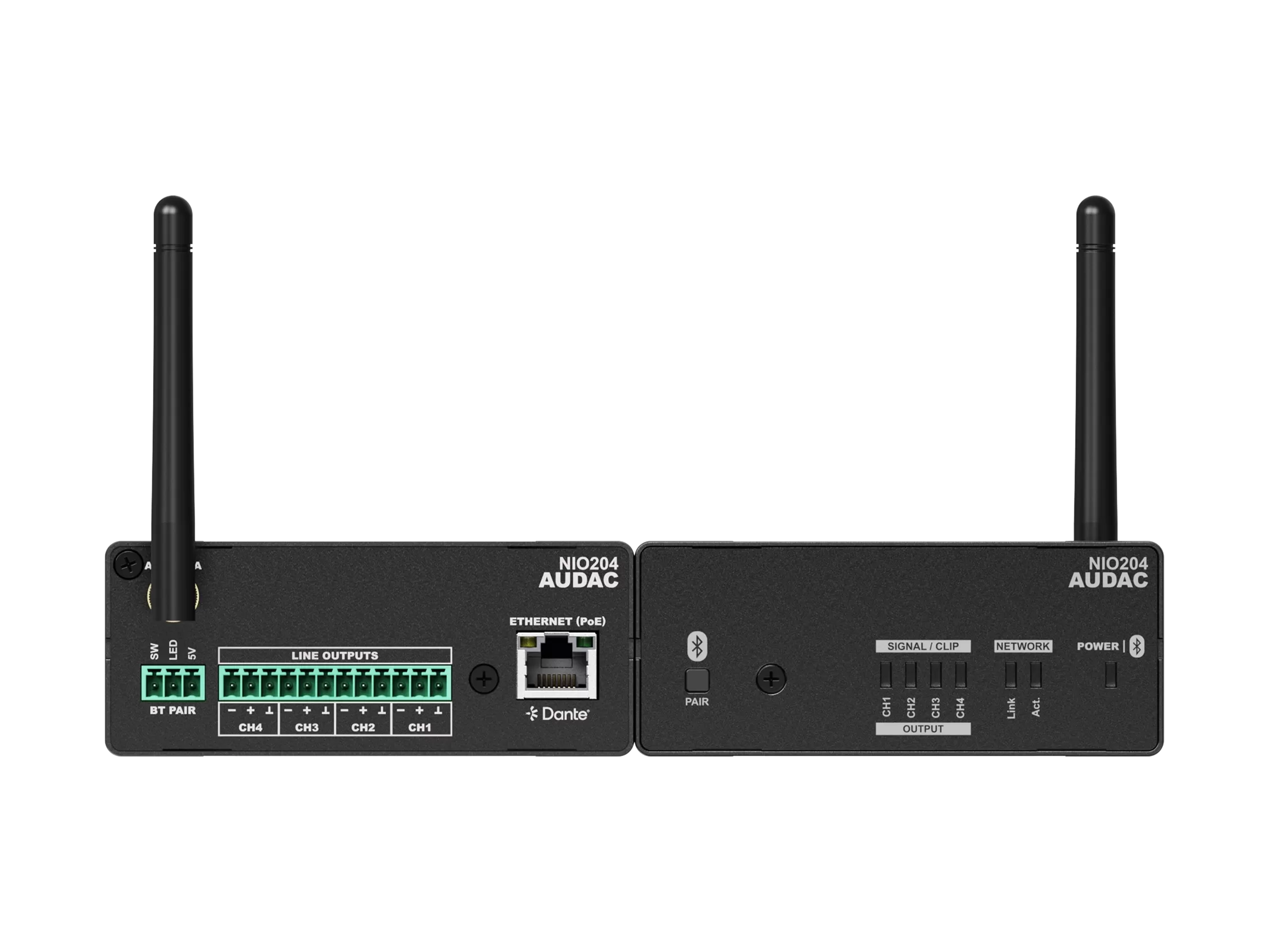 AUDAC NIO204 - матричный коммутационный блок Dante™/AES67 с возможностью микширования и обработки сигнала — 4 балансных линейных выхода