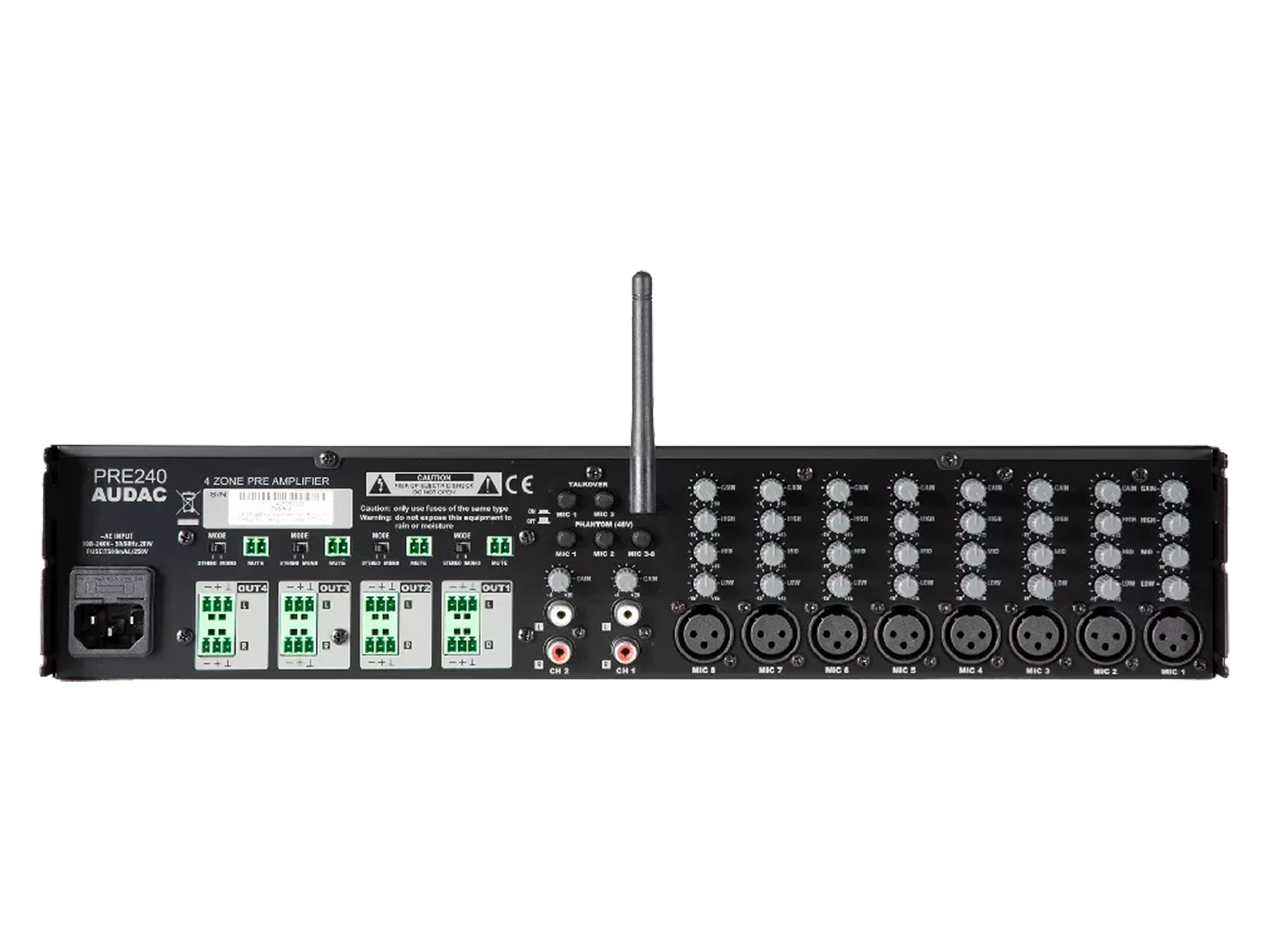 AUDAC PRE240 - четырехзонный стереофонический матричный микшер-предусилитель.