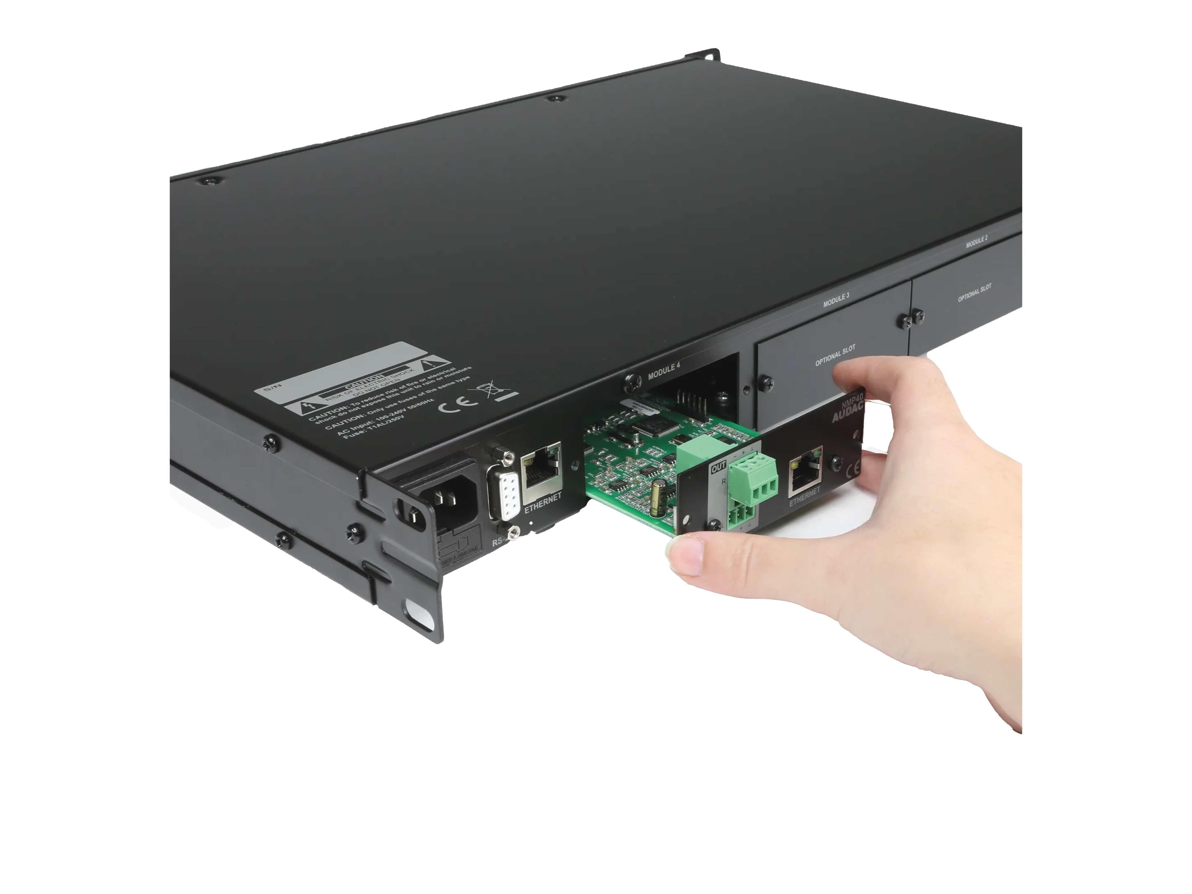 AUDAC XMP44 - профессиональное шасси на 4 слота, для модульной системы источников звука SourceCon. Поддержка управления через AUDAC Touch. (Опциональная поддержка Dante™/AES67).