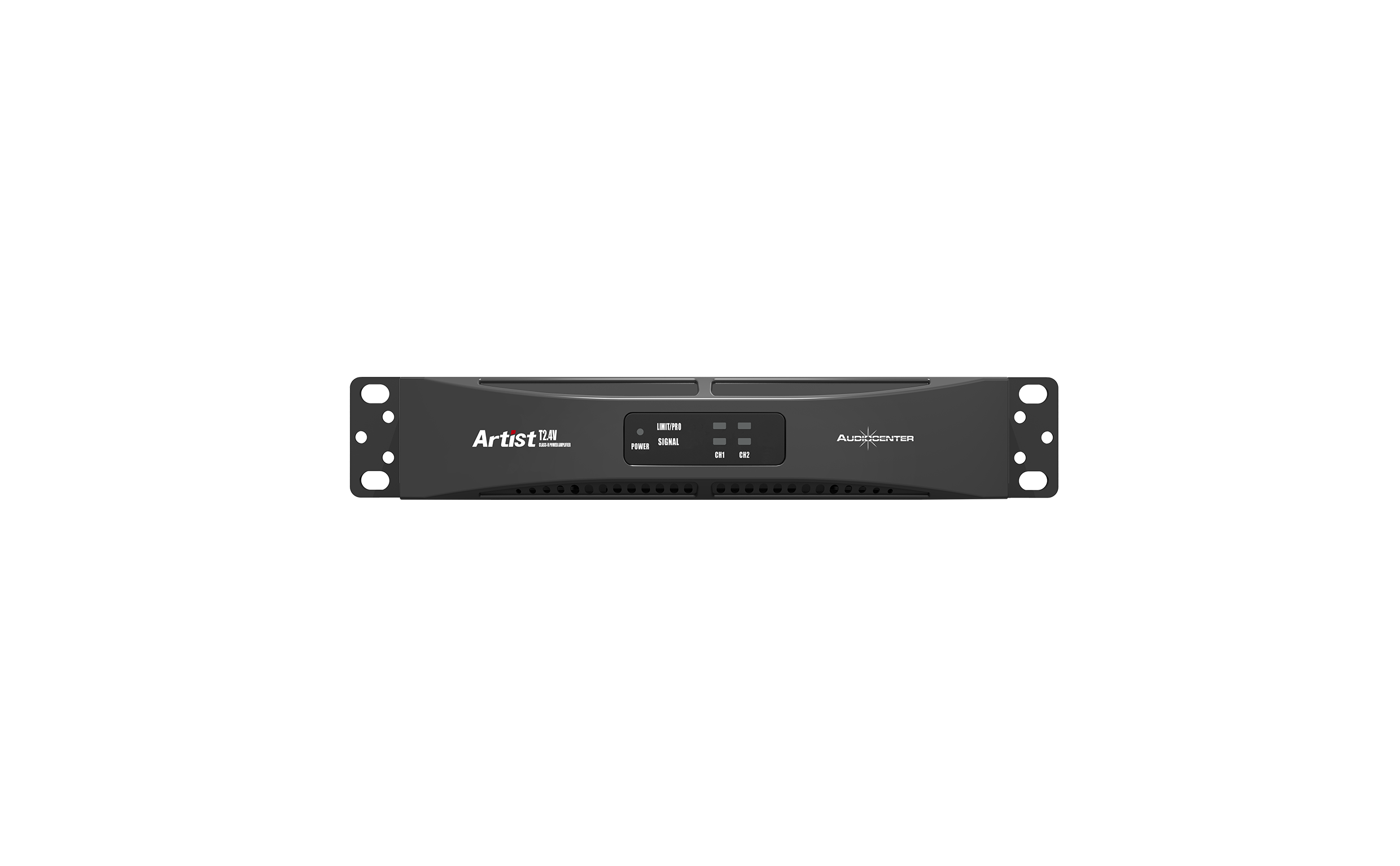 T2.4V – это знаменитая высокая надежность и выдающиеся звуковые характеристики системы AUDIOCENTER. Обе модели имеют низкоомный выход и выходы 70/100 В. T2.4V имеет ультракомпактный дизайн 1U и занимает половину пространства 19″ стойки. С адаптером для стойки он позволяет устанавливать его в одну стойку или рядом (два устройства) в 19-дюймовую стойку для оборудования. Также его можно установить на стол или на стену.