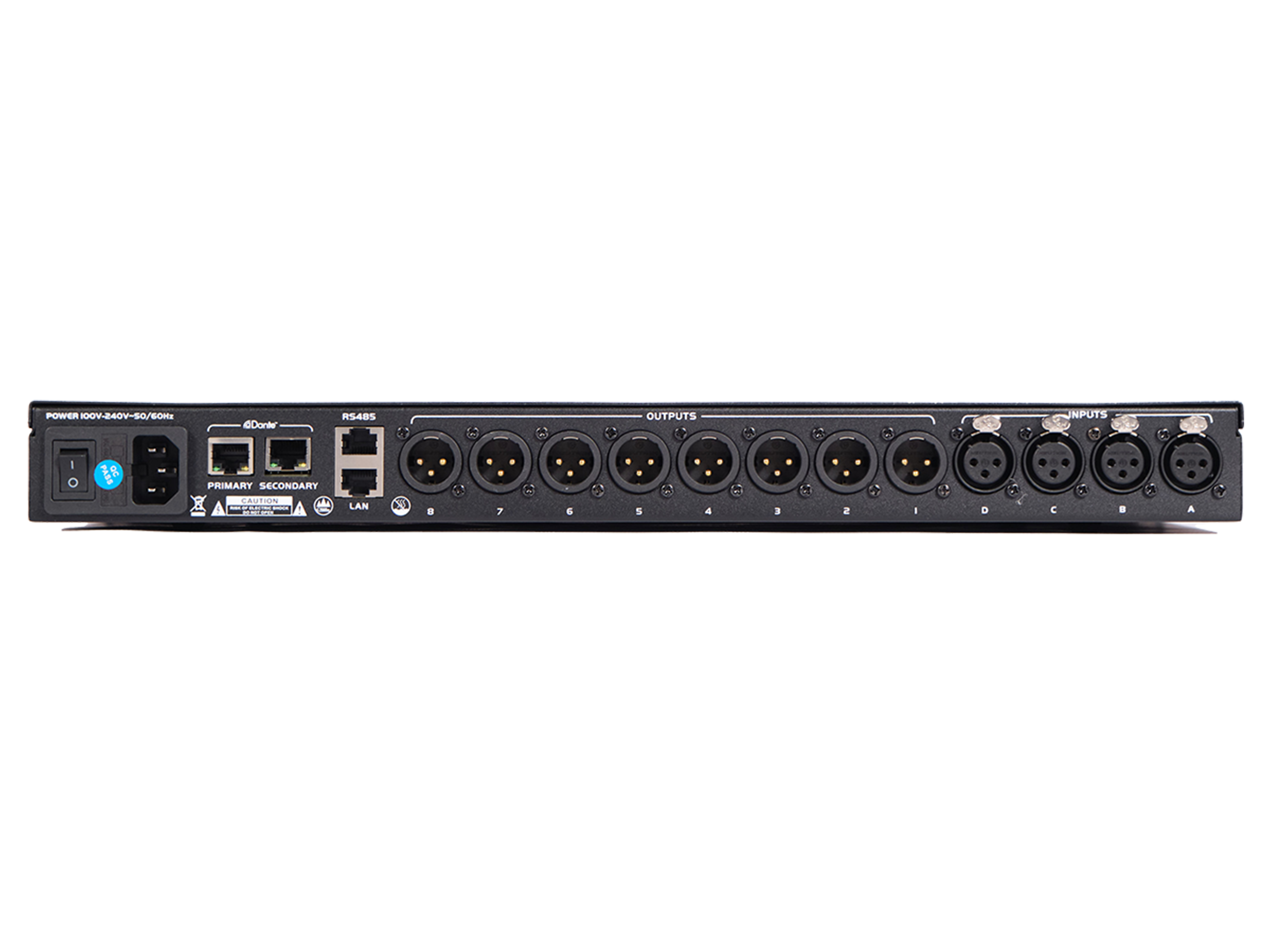 Audiorus DP-4800 Plus - DSP аудио контроллер (с DANTE) для акустических систем с режимом Full range; 4 входа / 8 выходов; Частота дискретизации 96 кГц; 32-разрядный DSP-процессор, 24-разрядный A/D преобразователь; USB интерфейс, RS485, LAN-соединение с компьютером, ПО для ПК,; DANTE поддерживают 4 канала ввода DANTE и 8 каналов вывода DANTE, каждый канал вывода DANTE может быть выбран для любого XLR-выхода;