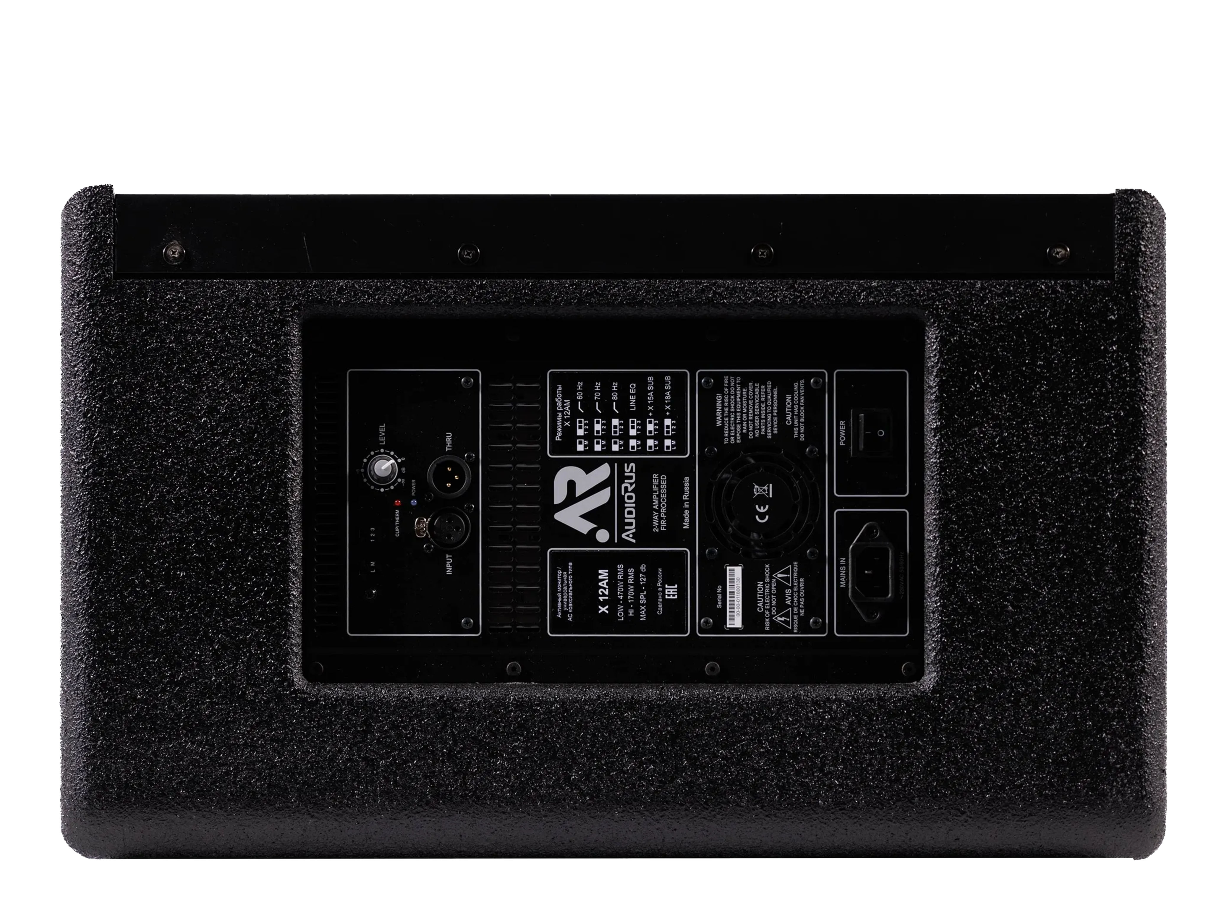 Audiorus X 12AM - активный монитор / универсальная акустическая система коаксиального типа; 12" НЧ/СЧ, 1.75" ВЧ Custom Coax динамик; MaxSPL: 126.5 дБ; МахРДЧ*: 65 Гц-16 кГц; 6 пресетов*; Дисперсия 80°, цилиндрическая; Усилитель-модуль класса D, 470 Вт/6Ом + 170 Вт/16Ом; DSP Analog Devices, 24/56-бит, 48 кГц; ~220–240В,50/60Гц; Материал корпуса: многослойная 12 мм фанера; Цвет: чёрный; Фланец Ø35, 2 фрезерованные ручки; Полиуретановое чёрное покрытие; Габариты (ШxВxГ,мм): 548 x 337 x 461; Вес нетто: 23 кг