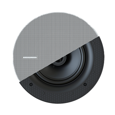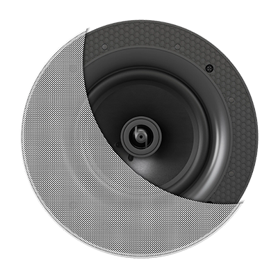 Двухполосная низкопрофильная low-impedance встраиваемая в потолок акустическая система. Вуфер – 6,5” (165mm), купольный поворотный твитер 0,75” (18,4 mm). Номинальное сопротивление — 8ohm, мощность — 20W(RMS) / 40W(max). Минимальное запотолочное пространство для встройки – 60мм минус толщина потолка. Декоративная металлическая сетка с миниатюрной рамкой толщиной 2мм, фиксация на неодимовых магнитах. Цвет белый, габариты — 227mm x 60mm, посадочное отверстие – 210мм, вес – 1,8кг.