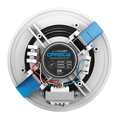 Широкополосная PublicAddress акустическая система для установки в подвесной потолок, Мощность 3/6W в 100V режиме, кабельный терминал под винт. Корпус имеет элегантный, в соответствии с современными трендами, безрамочный, лаконичный дизайн. Круглая, цвет корпуса белый, ABS пластик, алюминиевая решетка. Размер диффузора – 5” (127mm). Габаритный размер – 160mm х 55mm (за потолок – 50мм). Отверстие для установки — 140mm.