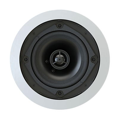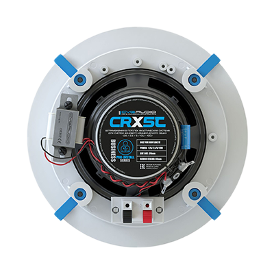 Двухполосная акустическая система для установки в подвесной потолок. Мощность 1,25/2,5/5/10W в 100V режиме. Круглая, цвет корпуса белый, ABS пластик, алюминиевая решетка. Вуфер — 5” (127mm), твитер 0,75” (19mm). Габаритный размер: 204mm х 92mm (за потолок — 80мм). Отверстие для установки — 170mm.