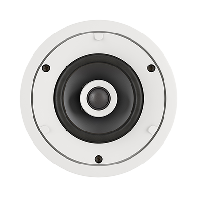 Двухполосная акустическая система home Hi-Fi класса для установки в подвесной потолок, мощность 20W RMS / 40W max – 8ohm. Круглая, цвет корпуса белый, ABS пластик, две металлических декоративных сетки в комплекте (для установки с рамкой и безрамочной). Вуфер – 4” (101,6mm) — материал полипропилен, купольный поворотный твитер 3/4”(19mm), материал — шелк, фильтр второго порядка. Габаритный размер – 156mm х 73mm (за потолок – 71мм). Отверстие для установки — 141mm.