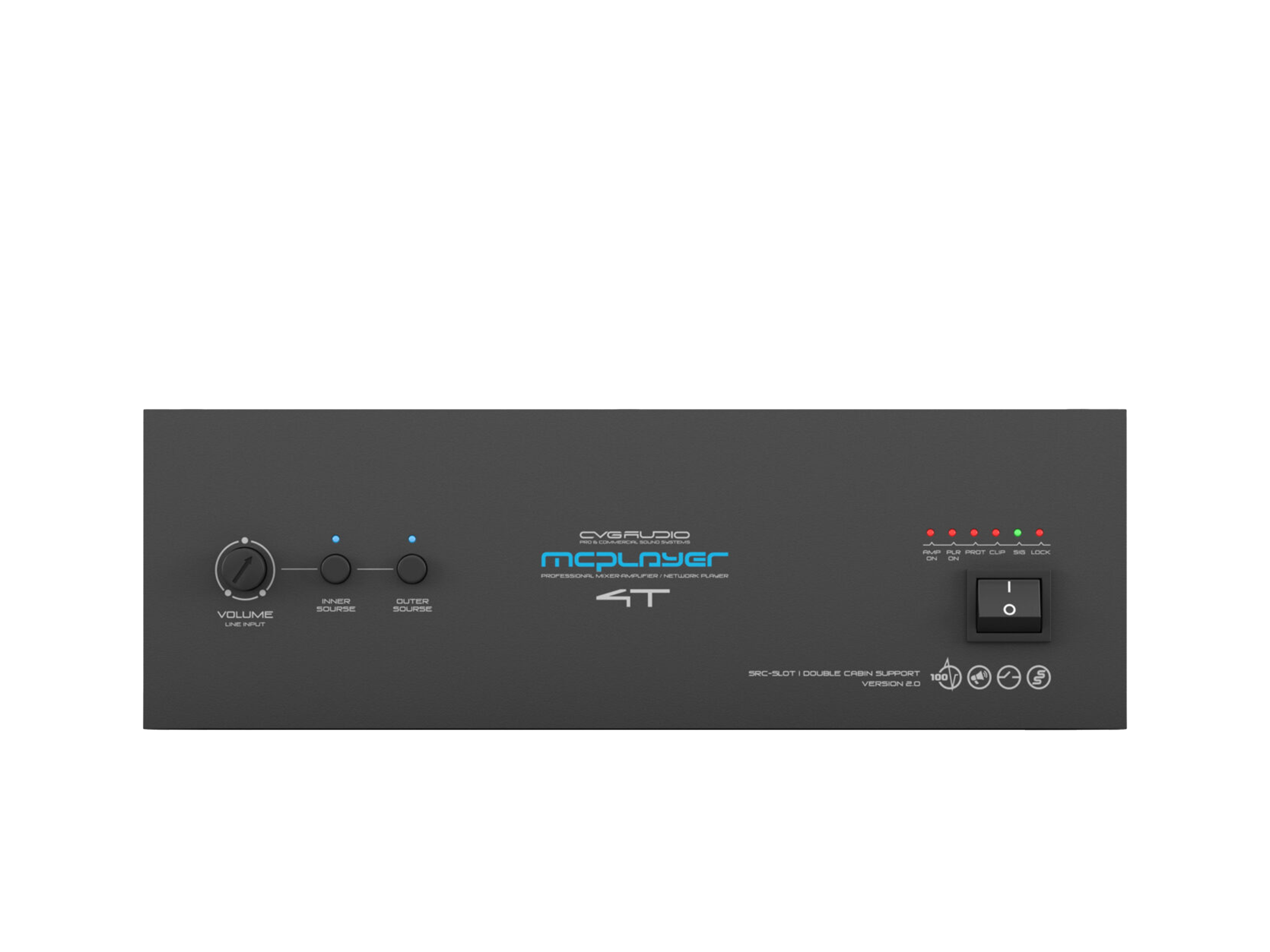 Профессиональный микшер-усилитель 40W/100V, два селективных LINE IN (INNER — встроенный плеер и OUTER — внешний источник). Интегрированный микрокомпьютер Raspberry Pi 3B для работы с профессиональными сетевыми сервисами, предоставляющими лицензированный контент. Универсальный LINE/MIC вход с управляемой чувствительностью, фантомным питанием и приоритетом над линейными входами. Управляющие контакты EXT.MUTE для интеграции с СОУЭ. Функция BYPASS LOCK для блокировки управления с лицевой панели усилителя. Корпус – 2U, кронштейны в стандартном комплекте поставки.