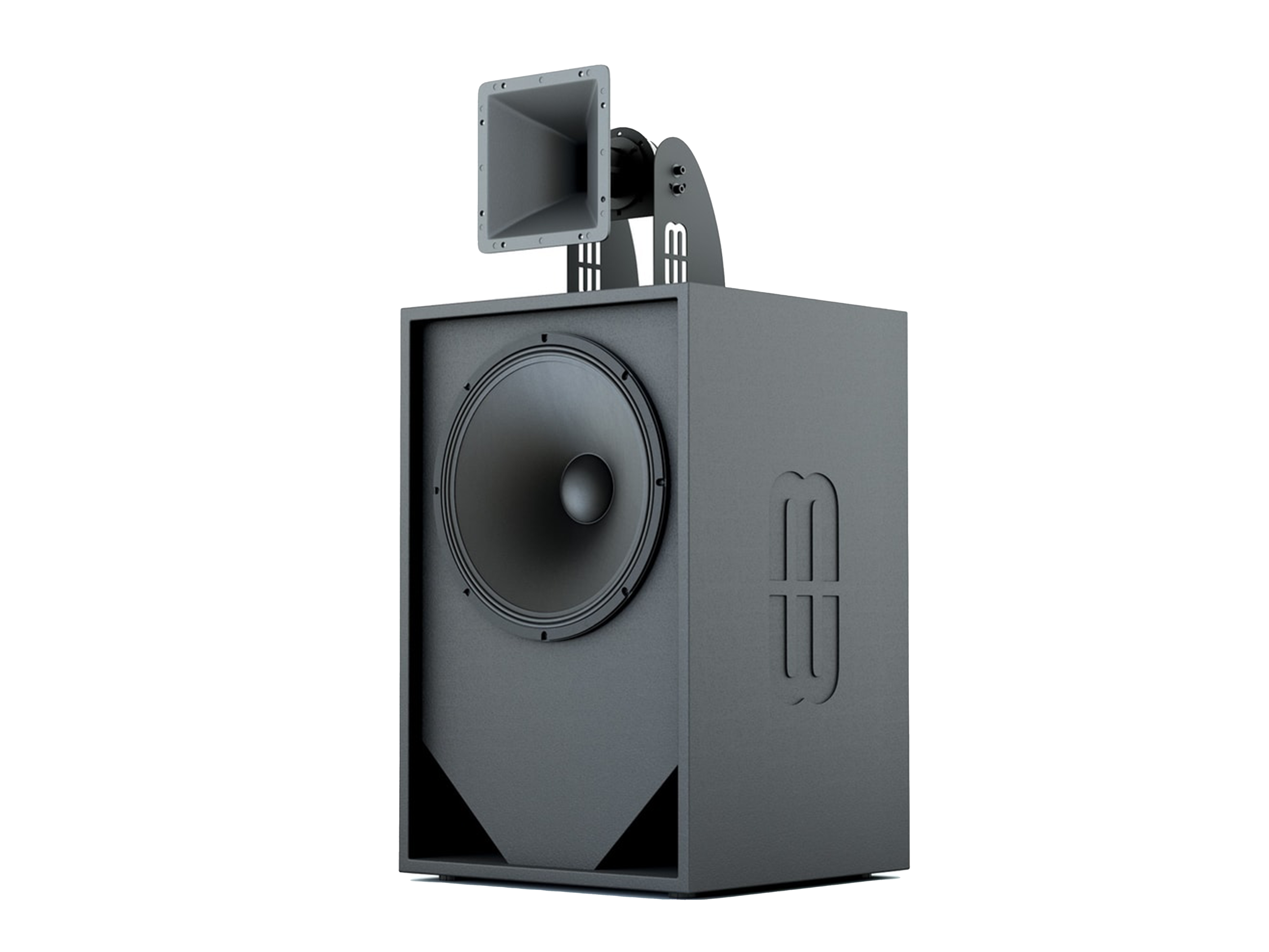 CVGAUDIO Moviematic MMCF115 - двухполосная профессиональная за-экранная акустическая система, рекомендуется для центрального и фронтальных каналов профессиональной звуковой системы в коммерческих кинотеатрах малого и среднего форматов. НЧ-CЧ звено — вуфер 1х15″(367,5mm), ВЧ звено – компрессионный драйвер 1х1″(24,5mm). Мощность — 500Вт(RMS) / 1000W(max), 45-18000Hz, дисперсия 90х75 градусов, чувствительность – 99,4dB/1W/1m, SPL(max) – 130dB, номинальное сопротивление – 8ohm. Только для внешнего кроссирования (нет внутреннего кроссовера). Габариты — 485х1025х465mm, вес – 45kg, цвет черный