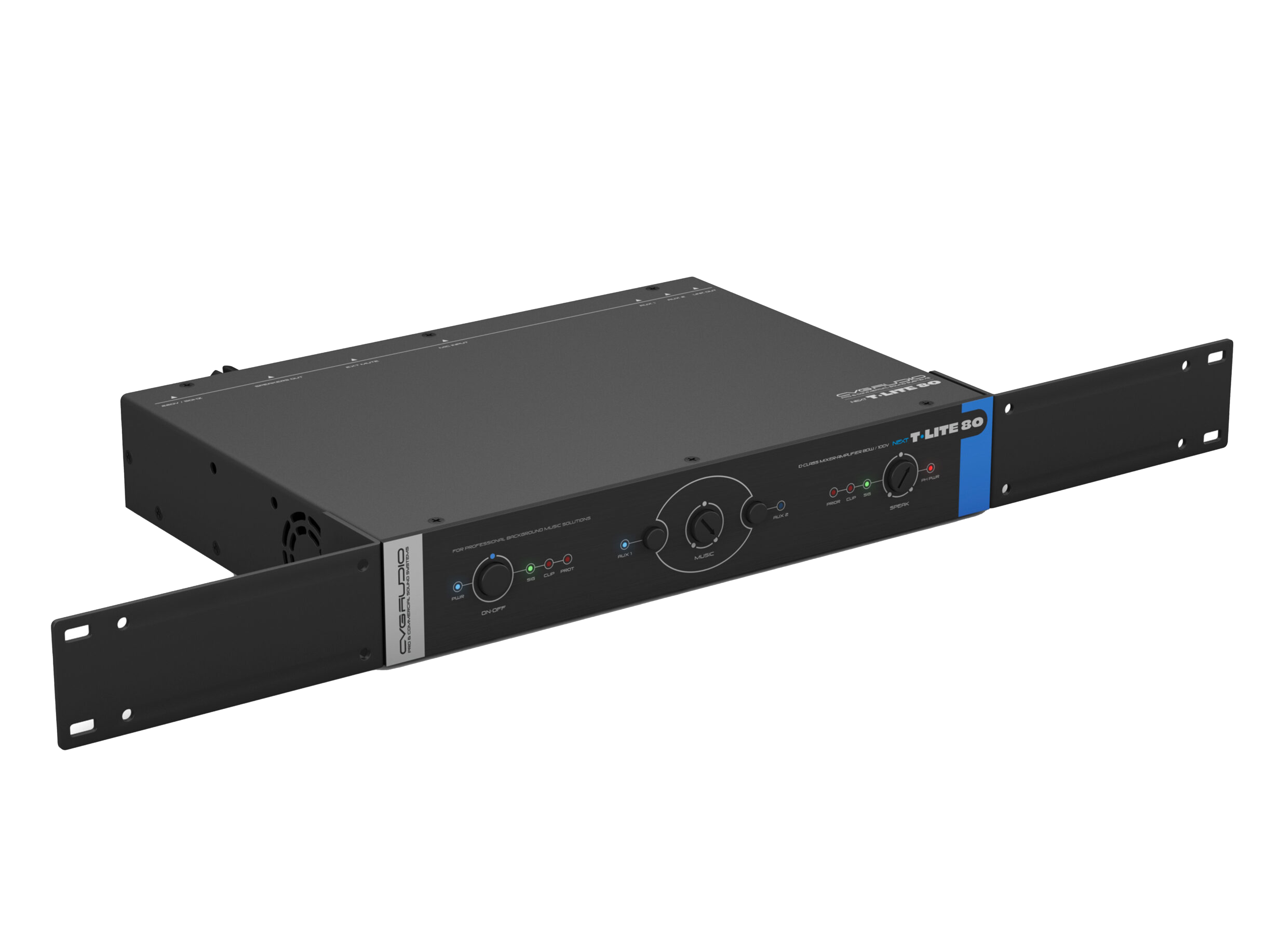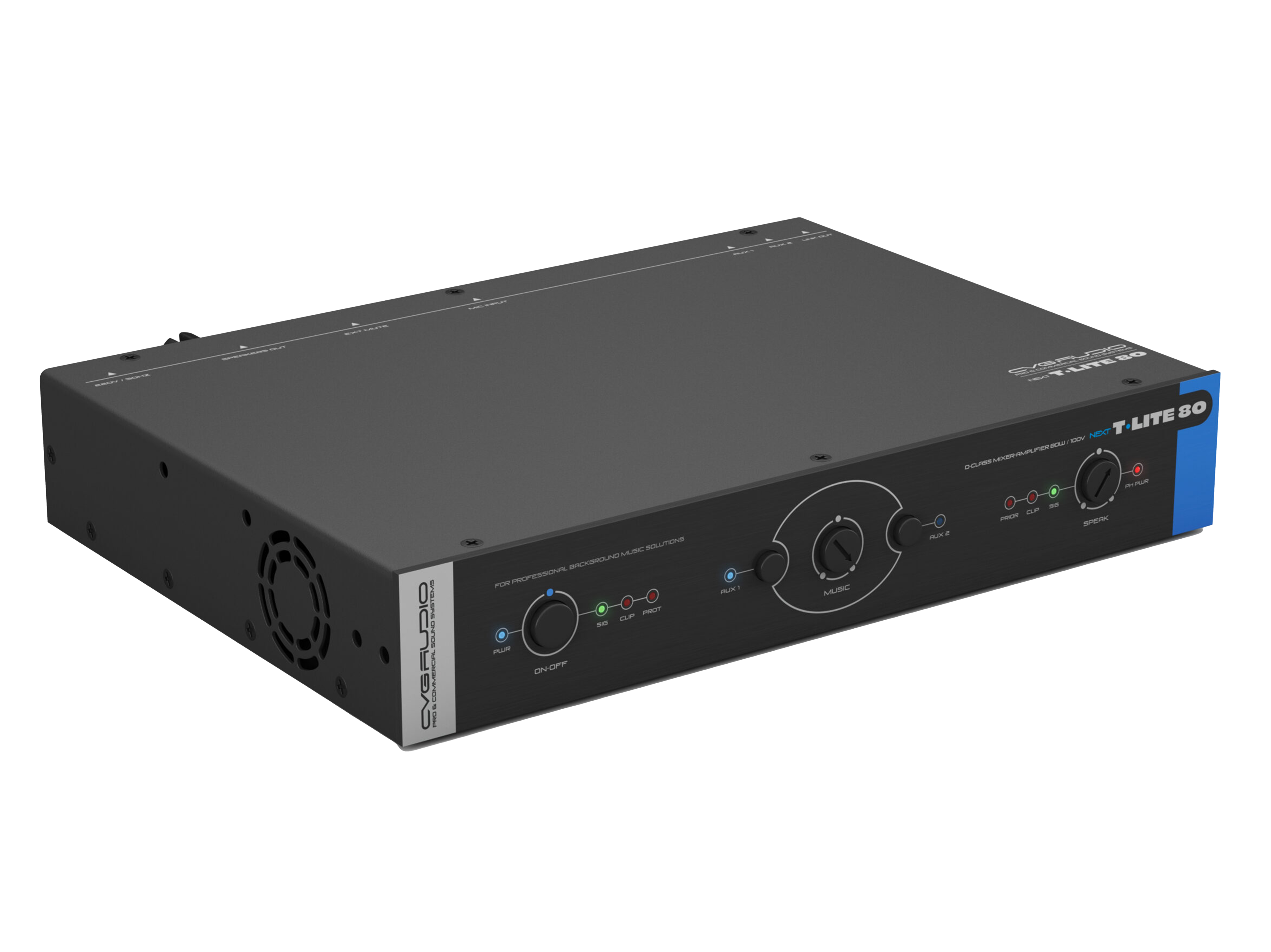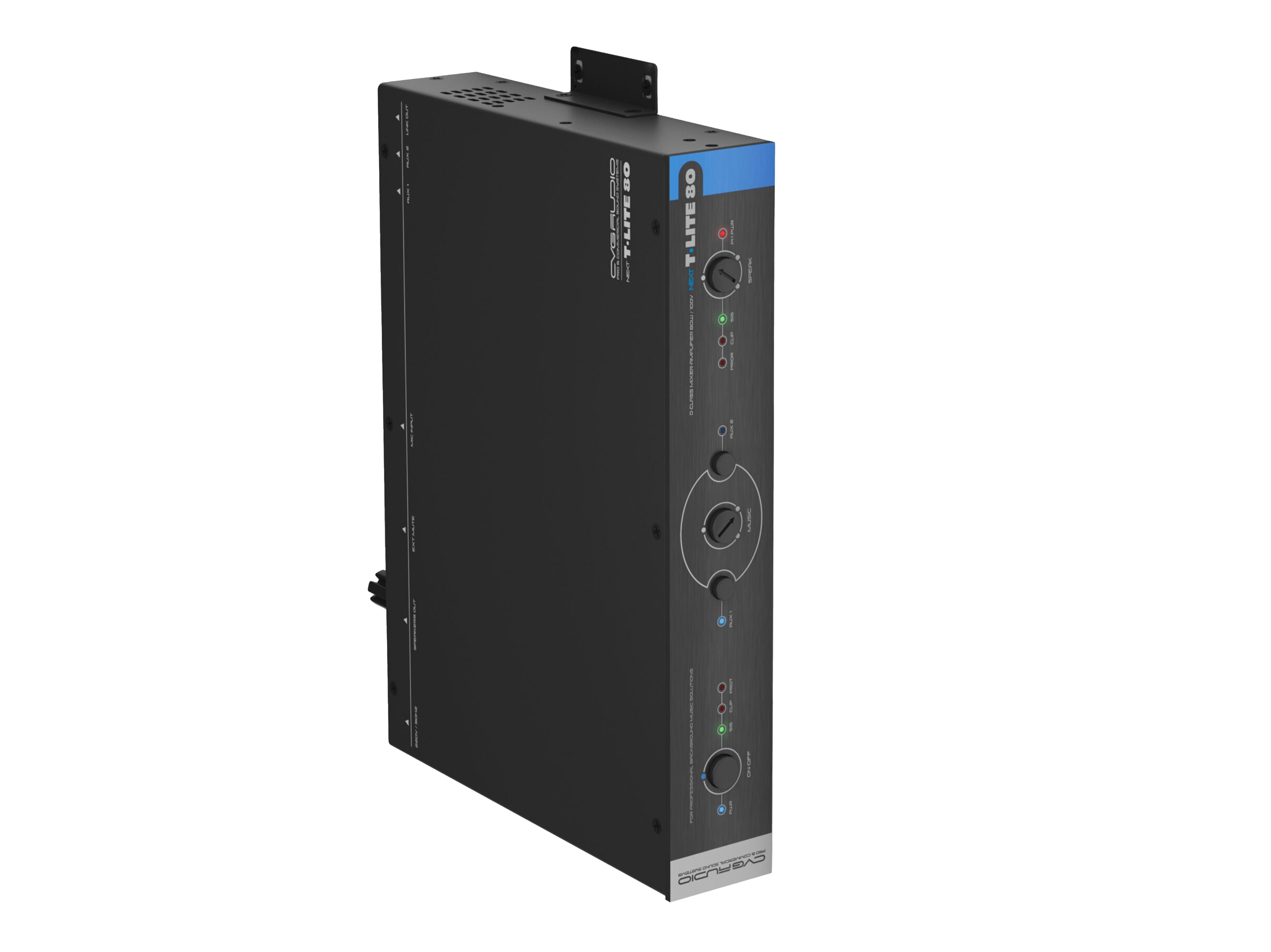Профессиональный микшер-усилитель для качественных 100V систем фонового звука и оповещения, мощность 80W/100V, D-class, два селективных Line-in 2х2RCA, универсальный Mic-in TRS/XLR (фантомное питание, управляемый приоритет, настраиваемый уровень приглушения). Подключение по CAT5E/CAT6 удаленного регулятора громкости и универсального источника сигнала (mp3-flac плеер / Fm тюнер / Bluetooth), максимальная дистанция 50m. Управляющие пожарные контакты EXT.MUTE. Раздельное управление громкостью и эквализацией линейного и микрофонного входов.
