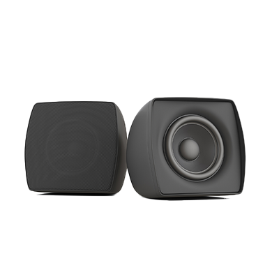 Миниатюрная 3″ (73,5мм), настенная, широкополосная акустическая система, мощность 6W/100V, нет низкоомного подключения, шарнирный настенный кронштейн в стандартном комплекте поставки. Пластиковый корпус черного цвета, 85mm x 85mm x 110mm, 590g