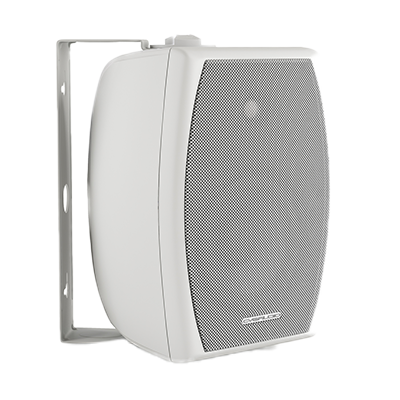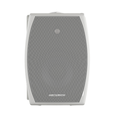 Двухполосная настенная акустическая система, мощность 4/8/16/30W в 100V режиме, 40W/max 60W в режиме 8ohm. Цвет корпуса белый, материал – ABS пластик, алюминиевая решетка. Твитер купольный 1”(25,4mm) материал PEI c металлическим напылением, вуфер 5,25”(133,4mm) материал полипропилен, резиновый подвес. Габаритный размер 237x163x160mm. Для установки в помещениях и на улице, IP54 (indoor/outdoor). Настенный кронштейн в комплекте.