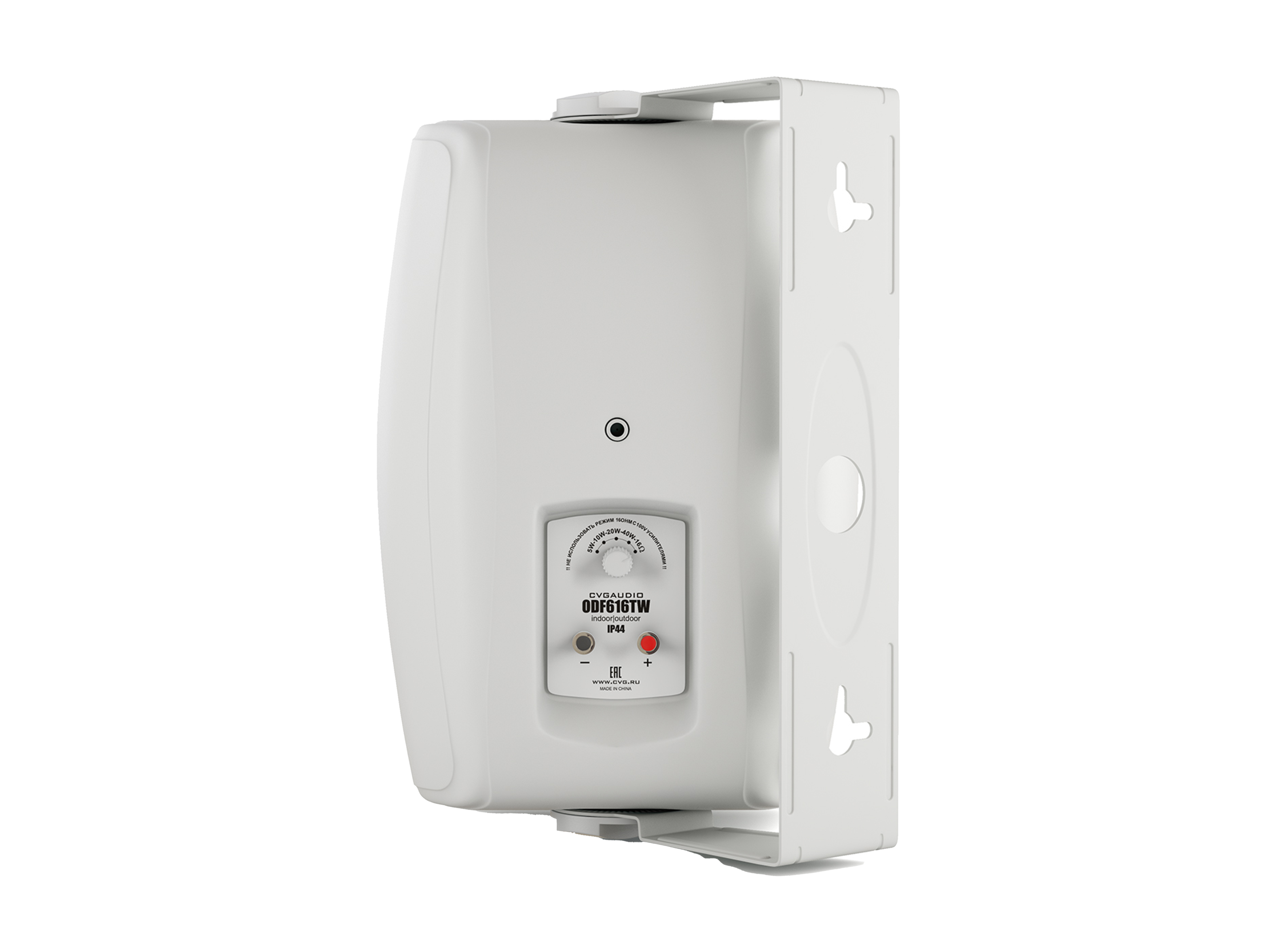 Двухполосная настенная акустическая система, мощность 5/10/20/40W в 100V режиме, 60W/max 80W в режиме 16ohm. Цвет корпуса белый, материал – ABS пластик, алюминиевая решетка. Твитер купольный 1”(25,4mm) материал PEI c металлическим напылением, вуфер 6,5”(165,1mm) материал полипропилен, резиновый подвес. Габаритный размер 279x192x192mm. Для установки в помещениях и на улице, IP54 (indoor/outdoor). Настенный кронштейн в комплекте.