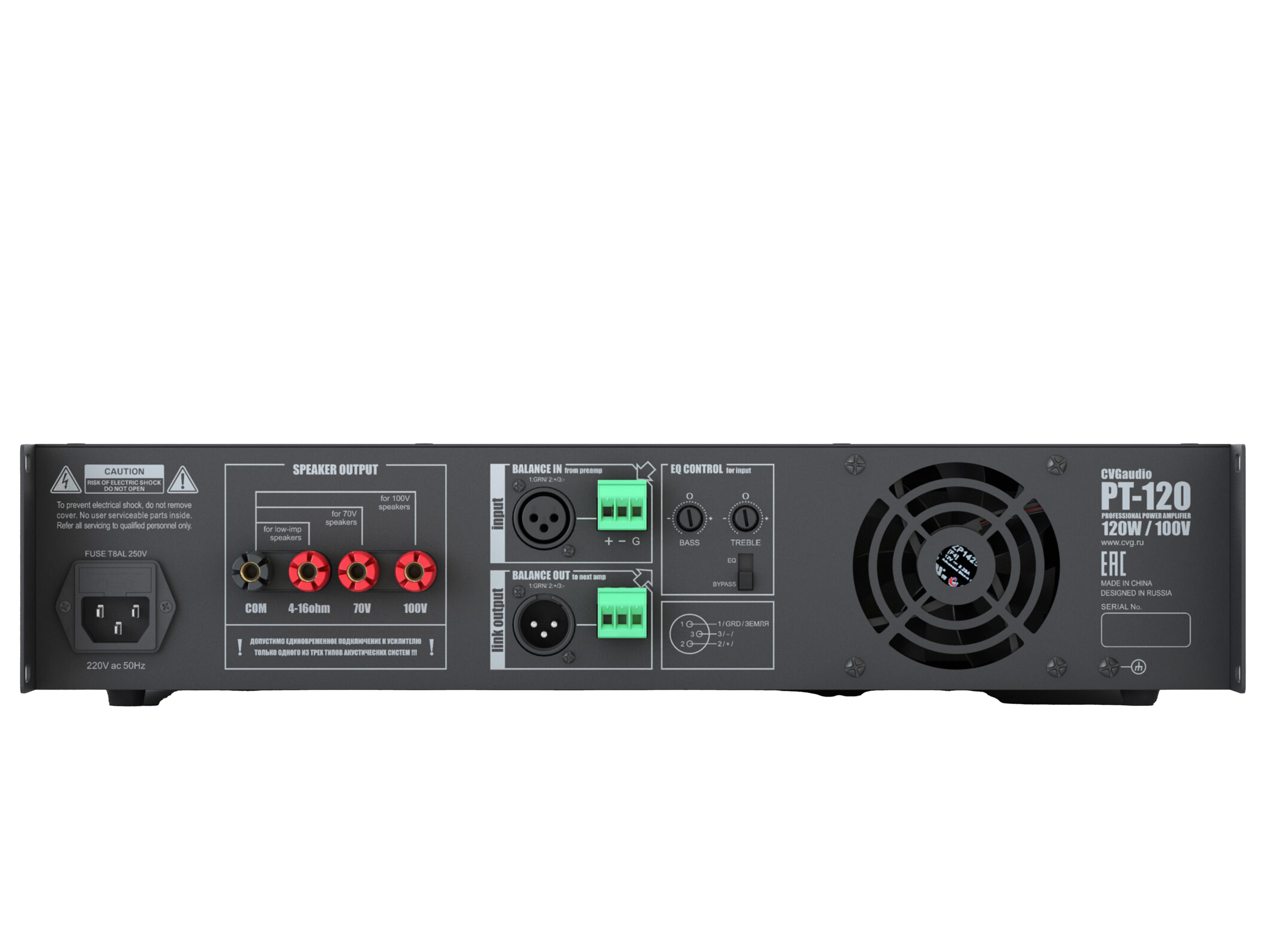 Профессиональный высококачественный усилитель мощности для систем трансляции фоновой музыки и речевого оповещения, мощность 120W / 100V, балансный XLR/Euro Block вход, линкующий XLR /Euro Block балансный выход. Двухполосный эквалайзер с возможностью режима обхода (ByPass), активное охлаждение. Металлический корпус, алюминиевая лицевая панель, высота в монтажной стойке – 2U (кронштейны в комплекте поставки)