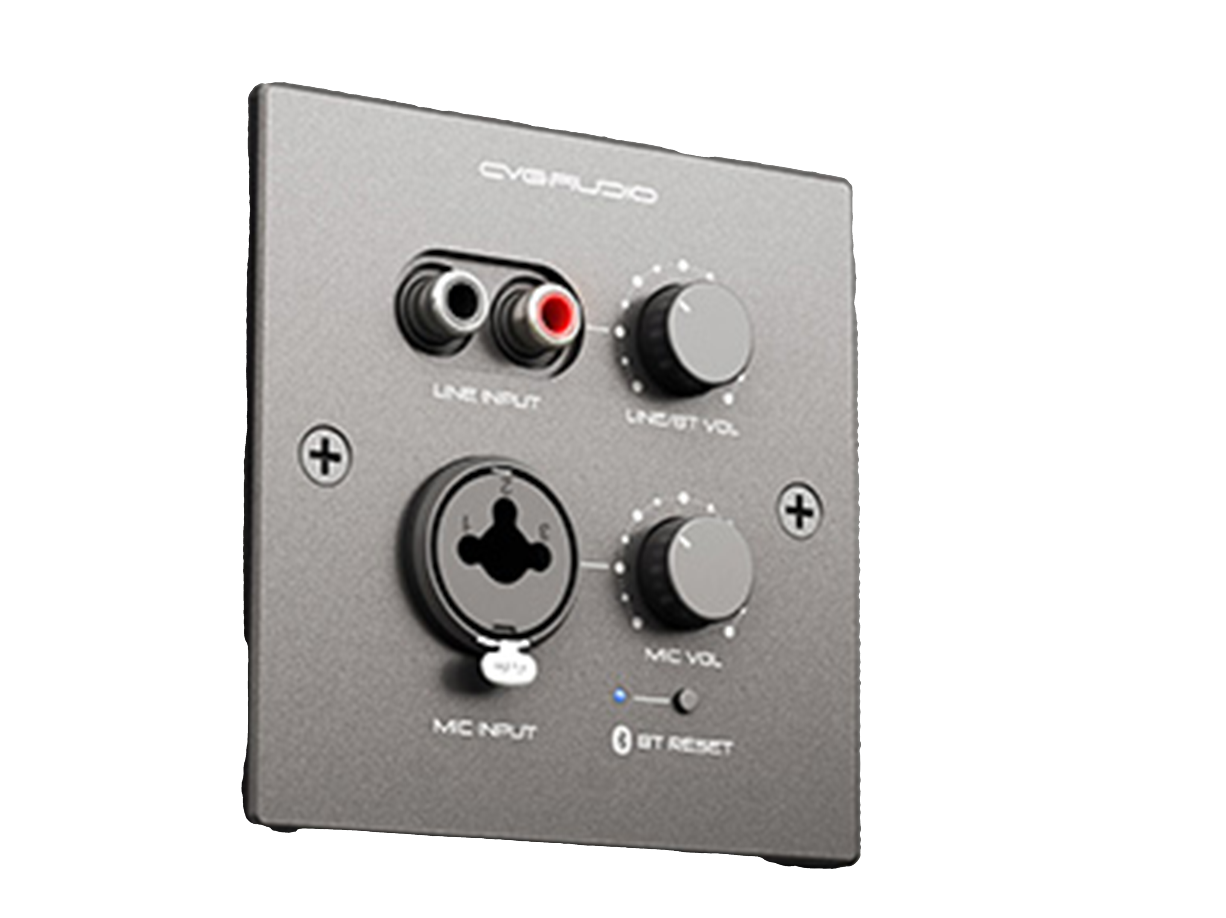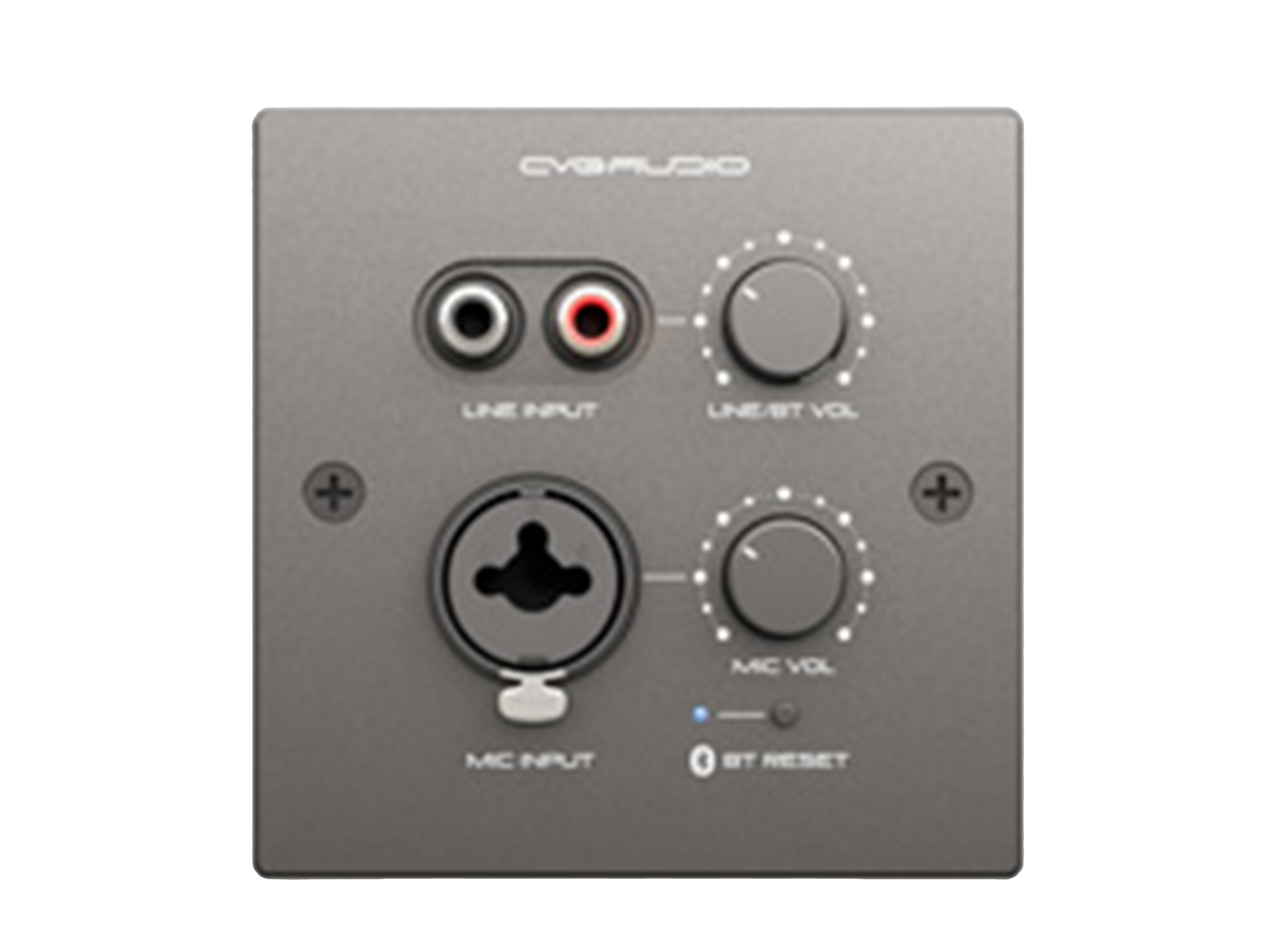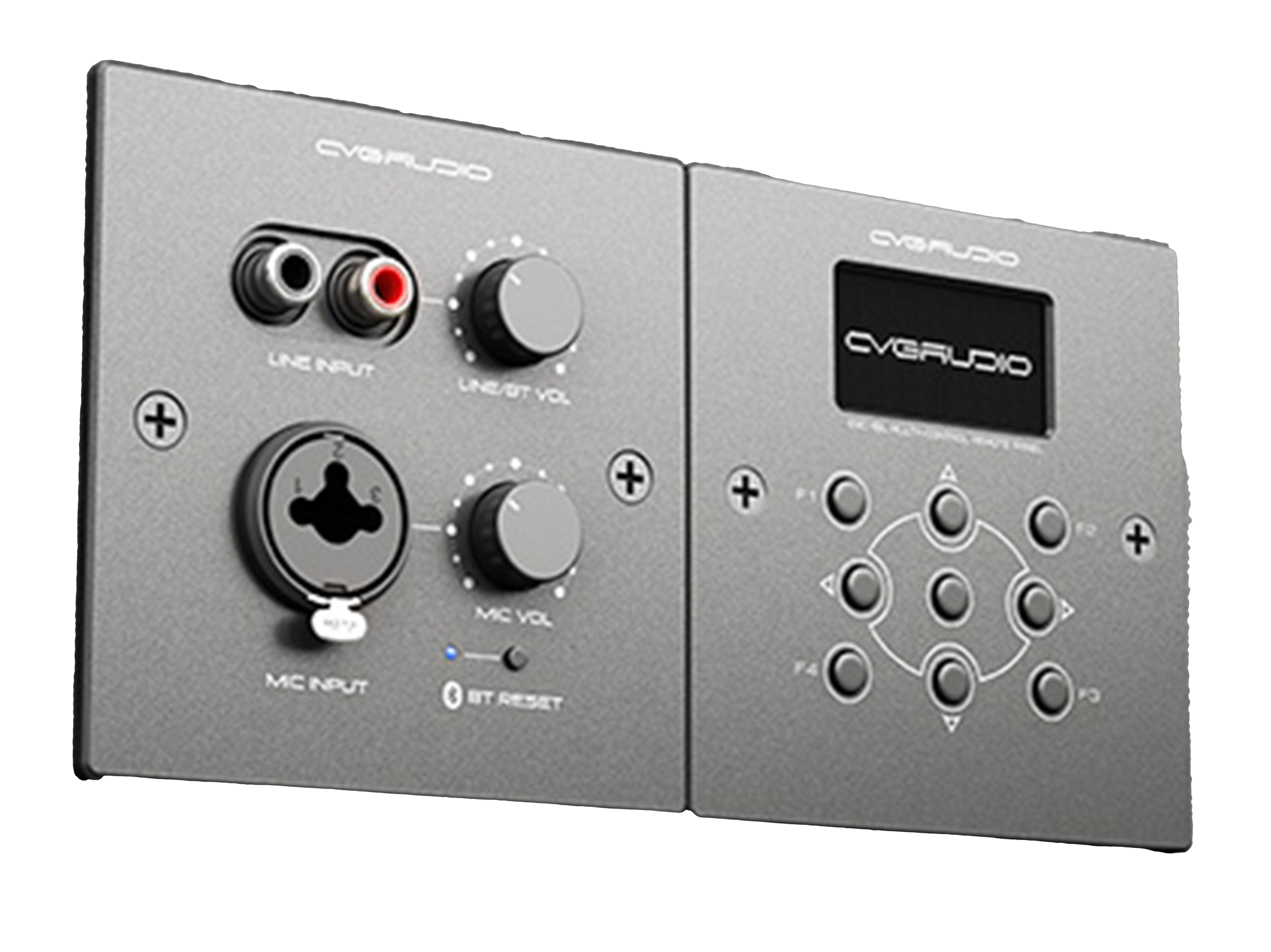 Настенная панель удаленного зонального подключения, MIC IN – XLR c фантомным питанием, LINE IN — 2RCA, Bluetooth с внутренней антенной-стикером. Раздельная регулировка громкости Line In плюс Blutooth и MIC IN. Питание 12V-24V. Совместим с процессорами семейства ZONER. Максимальное удаление при подключении по CAT5/6 – 100 метров. Выход – балансный моно / балансный стерео суммарный аудио сигнал. Bluetooth имеет возможность тонкой настройки, изменения названия сети, пин-кода на соединение и так далее. Радиус уверенного приема – 15m. Совместим с контроллерами CVGAUDIO ERC. Лицевая панель – темный алюминий.