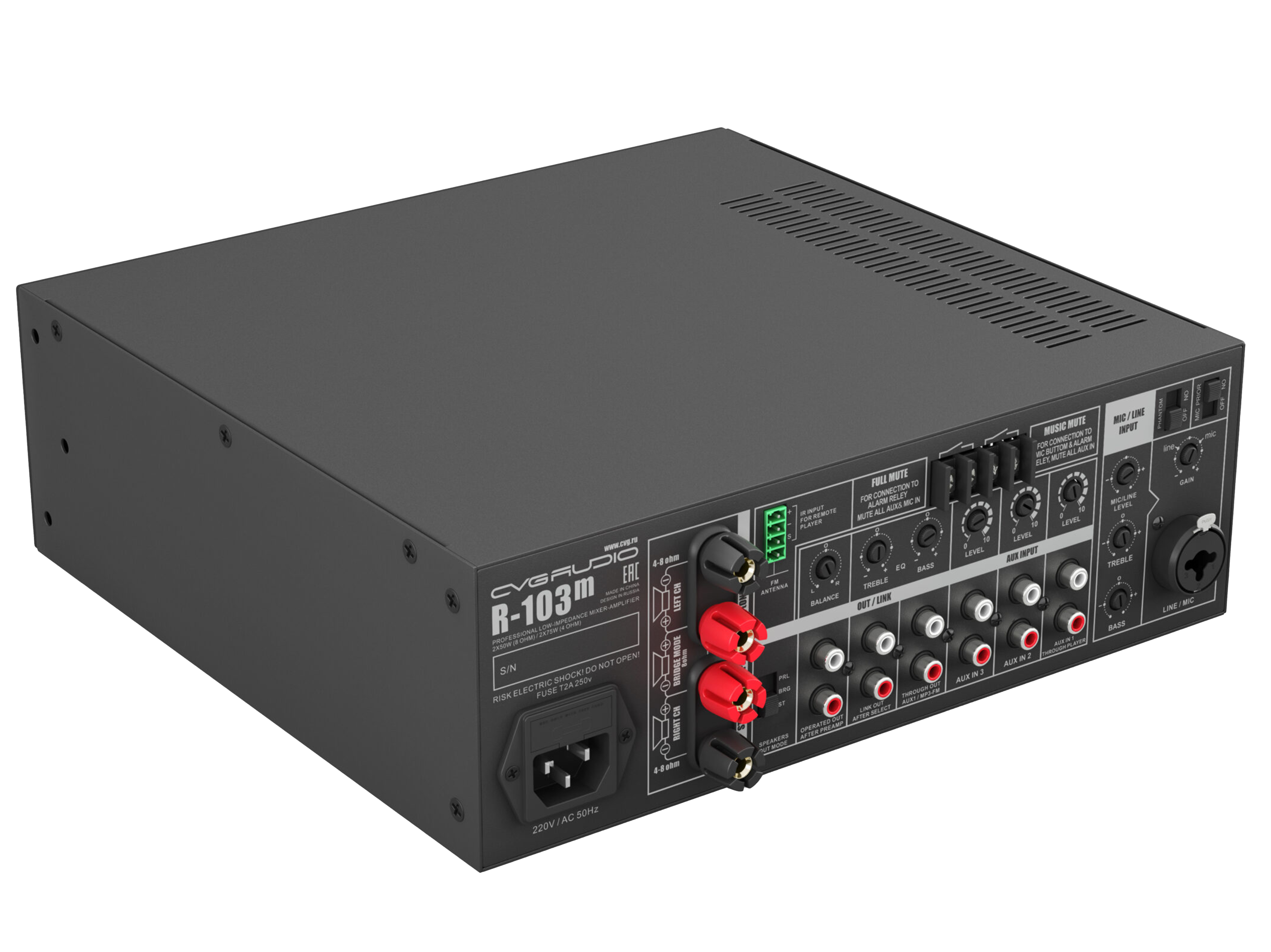 Профессиональный 2-х канальный стереофонический усилитель, 2x50W/8ohm, 2x75W/4ohm, сопротивление нагрузки 4-8ohm, 3 Line input — 2RCA с селектором выбора активного входа, встроенный USB/SD плеер, FM тюнер, Bluetooth, один mic input TRS/XLR с возможностью активации приоритета над другими входами и включения фантомного питания, EQ раздельно для line и mic входов, EXT.MUTE/FULL MUTE контакты, режимы stereo/bridge/parallel. Миниатюрный металлический корпус. Активное охлаждение с зависимостью скорости вращения вентилятора от температуры нагрева. Защита от короткого замыкания, перегрева, перегрузки, предохранитель по питанию.