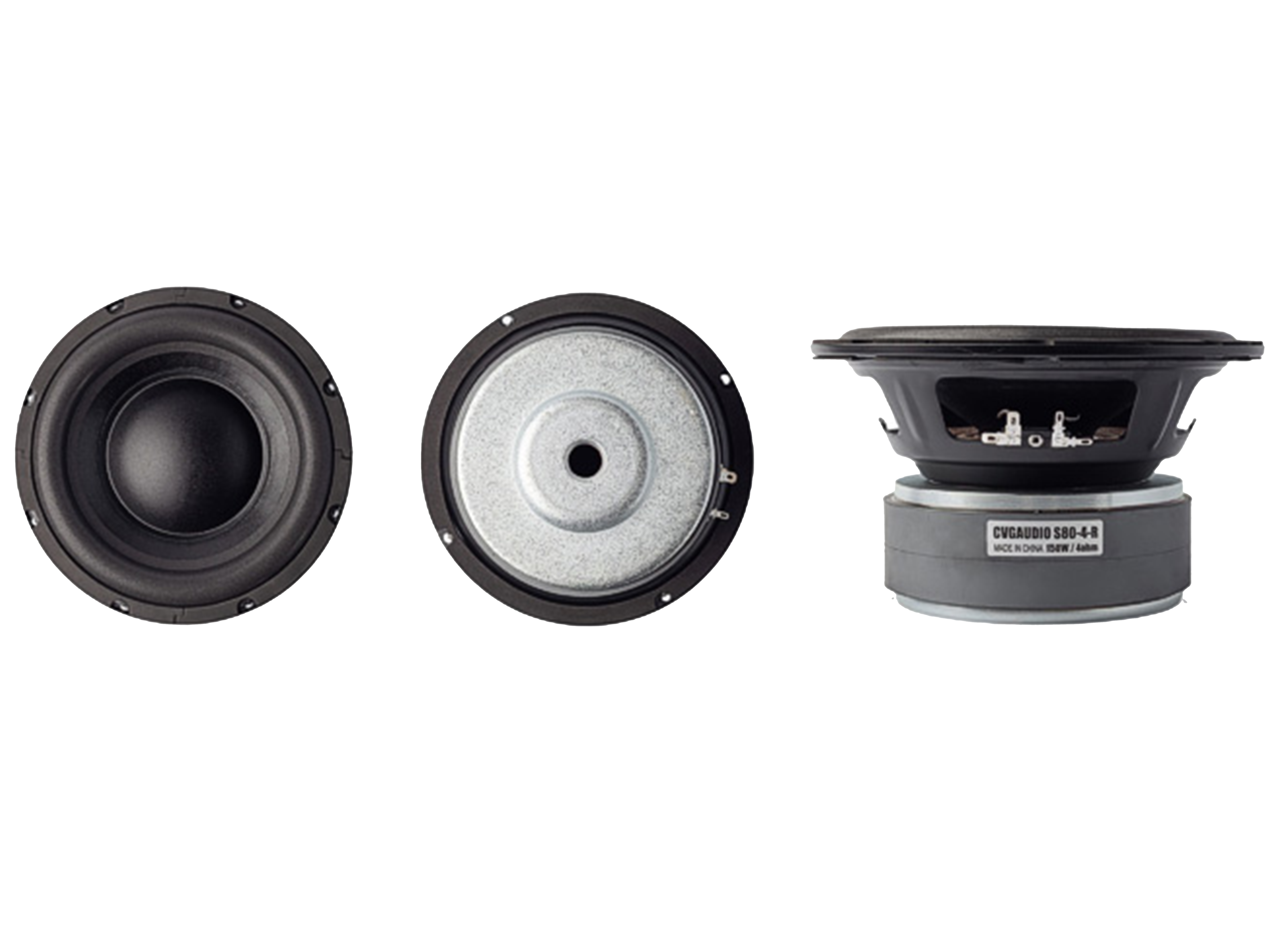 CVGAUDIO S80-4-R- динамическая головка НЧ диапазона (сабвуфер). Номинальная мощность динамической головки – 150W (RMS), максимальная мощность 300 Вт. Размерность диффузора - 8” / 203mm. Номинальное сопротивление - 4ohm. Резонансная частота – 46,5Hz.