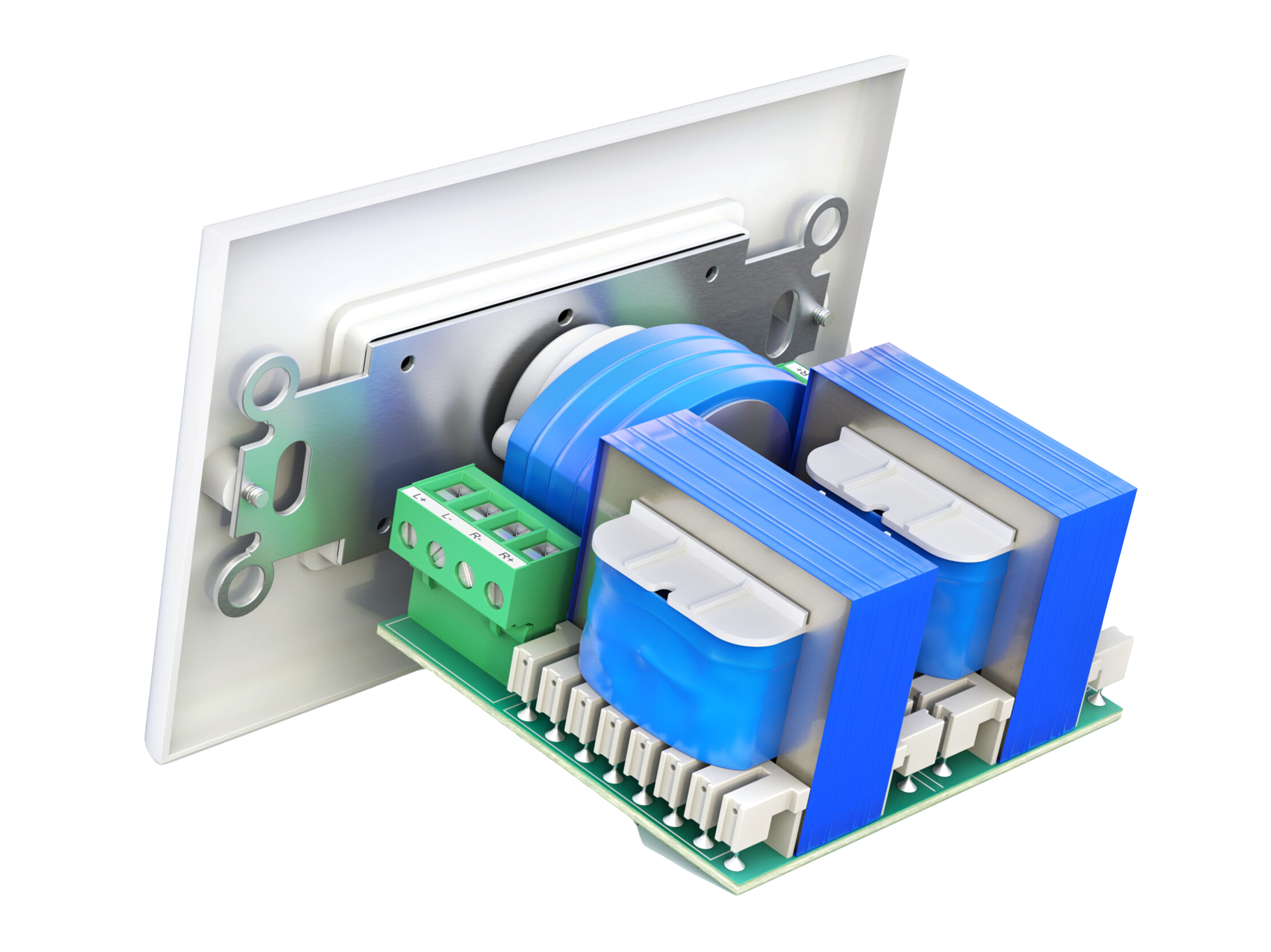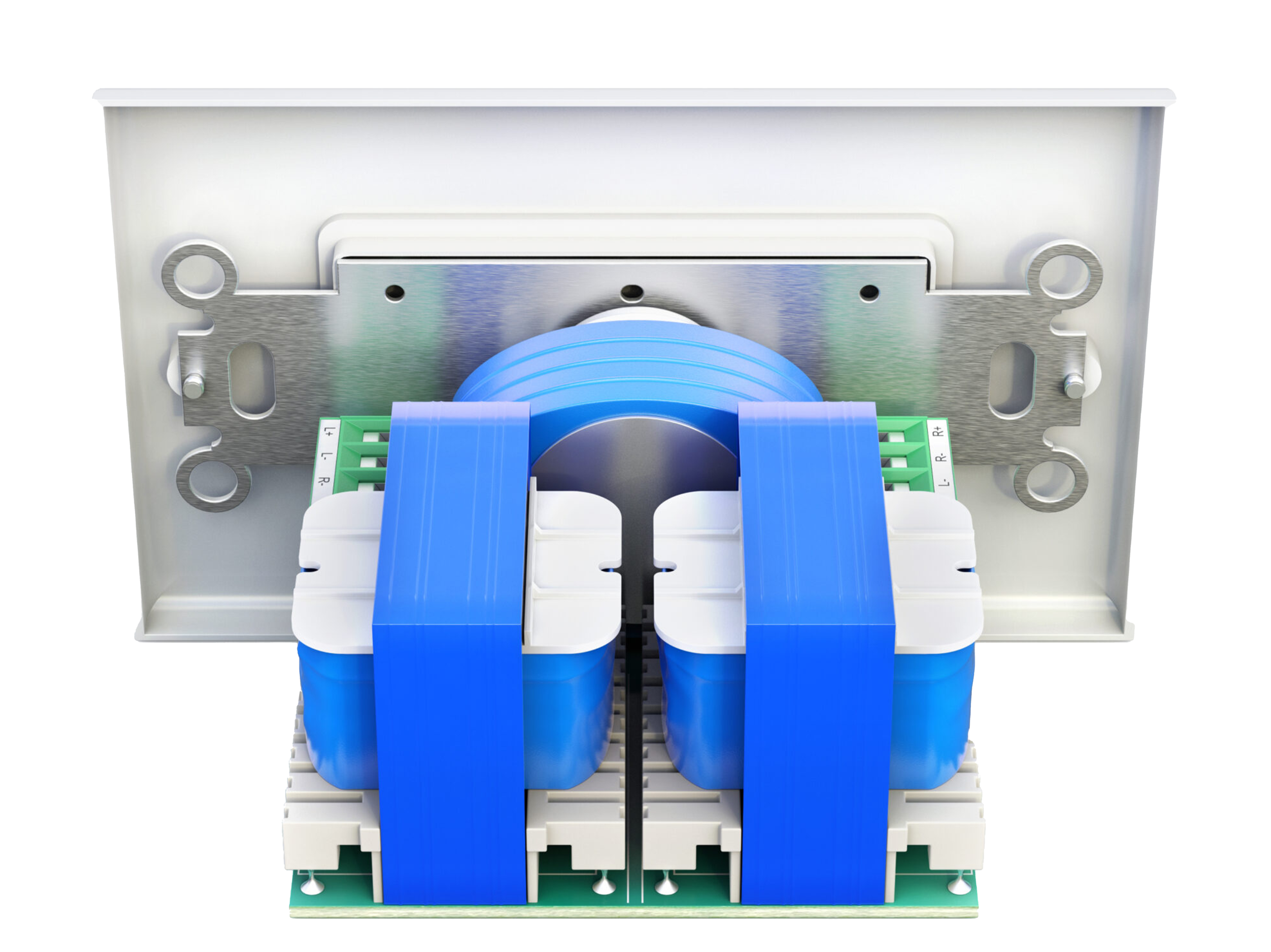 Настенный двухканальный регулятор громкости для low-impedance систем фонового звука (4-8ohm), 11 уровней громкости плюс отключение. Максимальная мощность гагрузки — 100W на канал. Система выравнивания импеданса (переключение джампером) для подключения нескольких пар динамиков к одному усилителю. Установка в стандартную электрическую монтажную коробку американского образца. Габаритные размеры: 114mm x 97mm x 70mm, встраиваемая в стену часть — 70mm. Пластиковая декоративная панель, цвет белый.