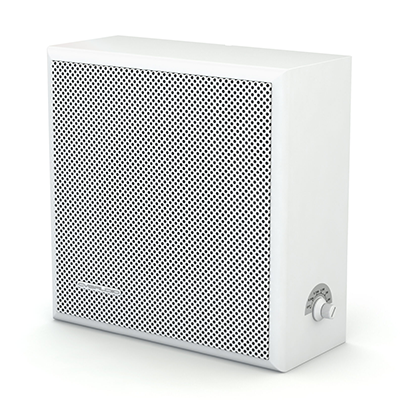 5″ (122,5mm) широкополосный настенный абонентский громкоговоритель для трансляционных 100V систем Public Address, встроенный шестипозиционный аттенюатор на боковой стороне корпуса (0,38/0,75/1,5/3/6W/off). Корпус белого цвета, ABS пластик, металлическая решетка на лицевой стороне. Не требует кронштейна, навесной монтаж на два самореза. Самозажимной кабельный терминал. Для установки в помещениях (indoor). Габариты: 203mm x 203mm x 88mm.