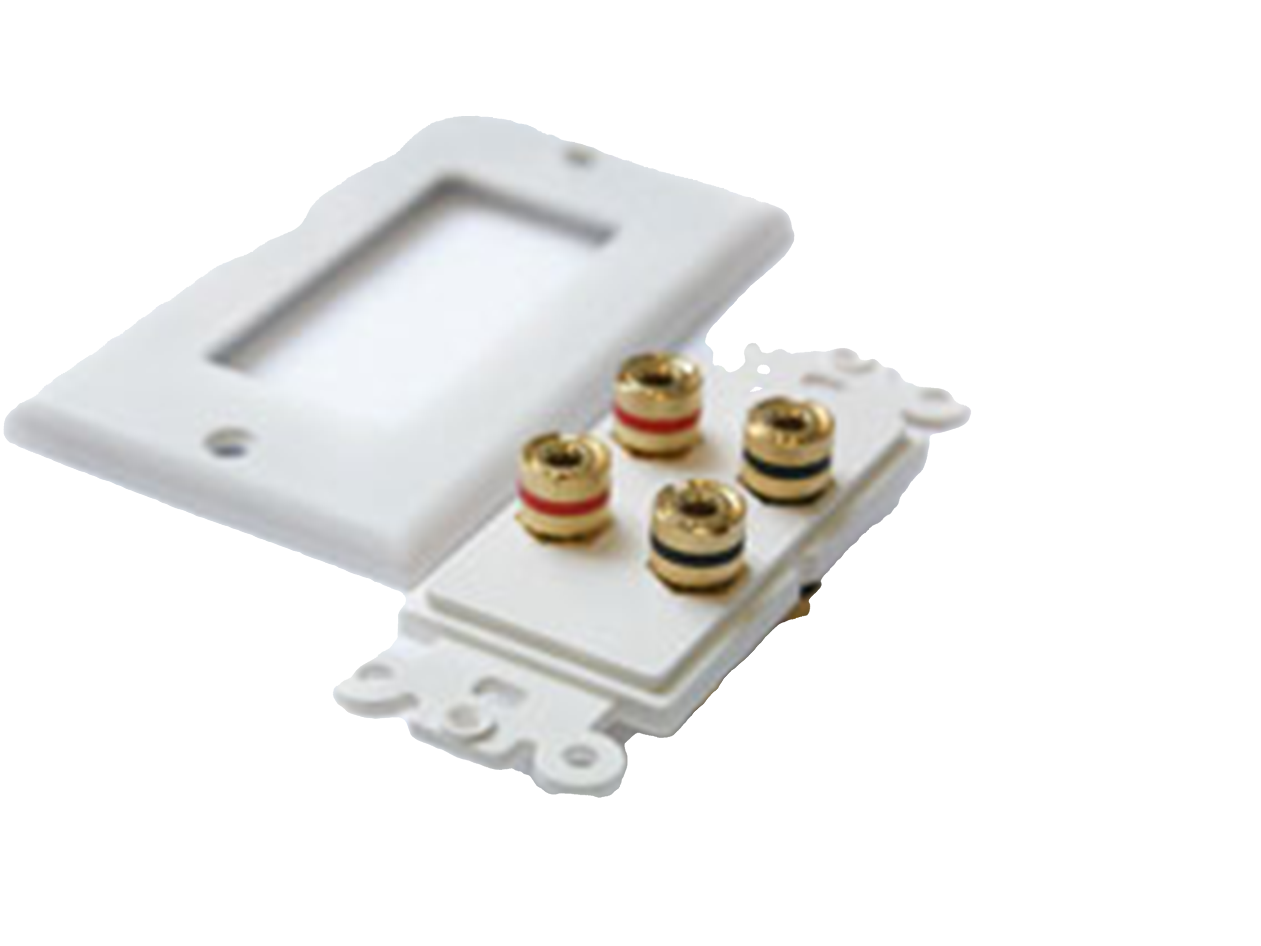 CVGAUDIO WSP02 - двухканальный настенный декоративный кабельный вывод для спикерного кабеля (акустическая розетка). Четыре двусторонних металлических зажима с золотым покрытием и красно — черной маркировкой полярности для фиксации двух спикерных каналов (стерео или два моно). Фиксация кабеля сечением от 0,5 до 4mm. Установка на подразетник американского стандарта или непосредственно на стену. Крепление в комплекте. Цвет декоративной накладки белый.