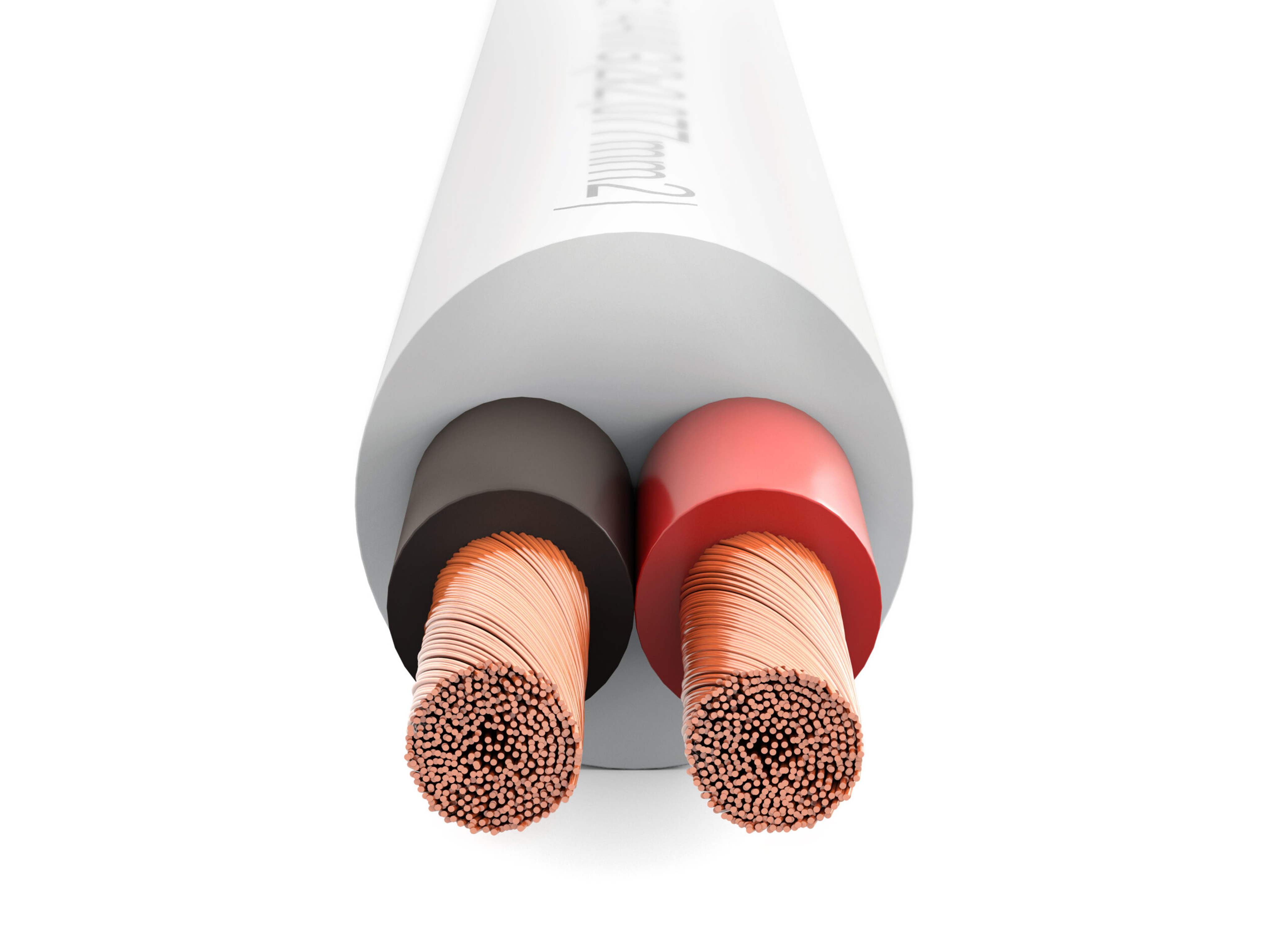 Профессиональный инсталляционный круглый всепогодный спикерный кабель, 14AWG(2×2,077mm2), дополнительная PVC изоляция, белый, 41/0,254mm OFC (99,97%), бухта 100m