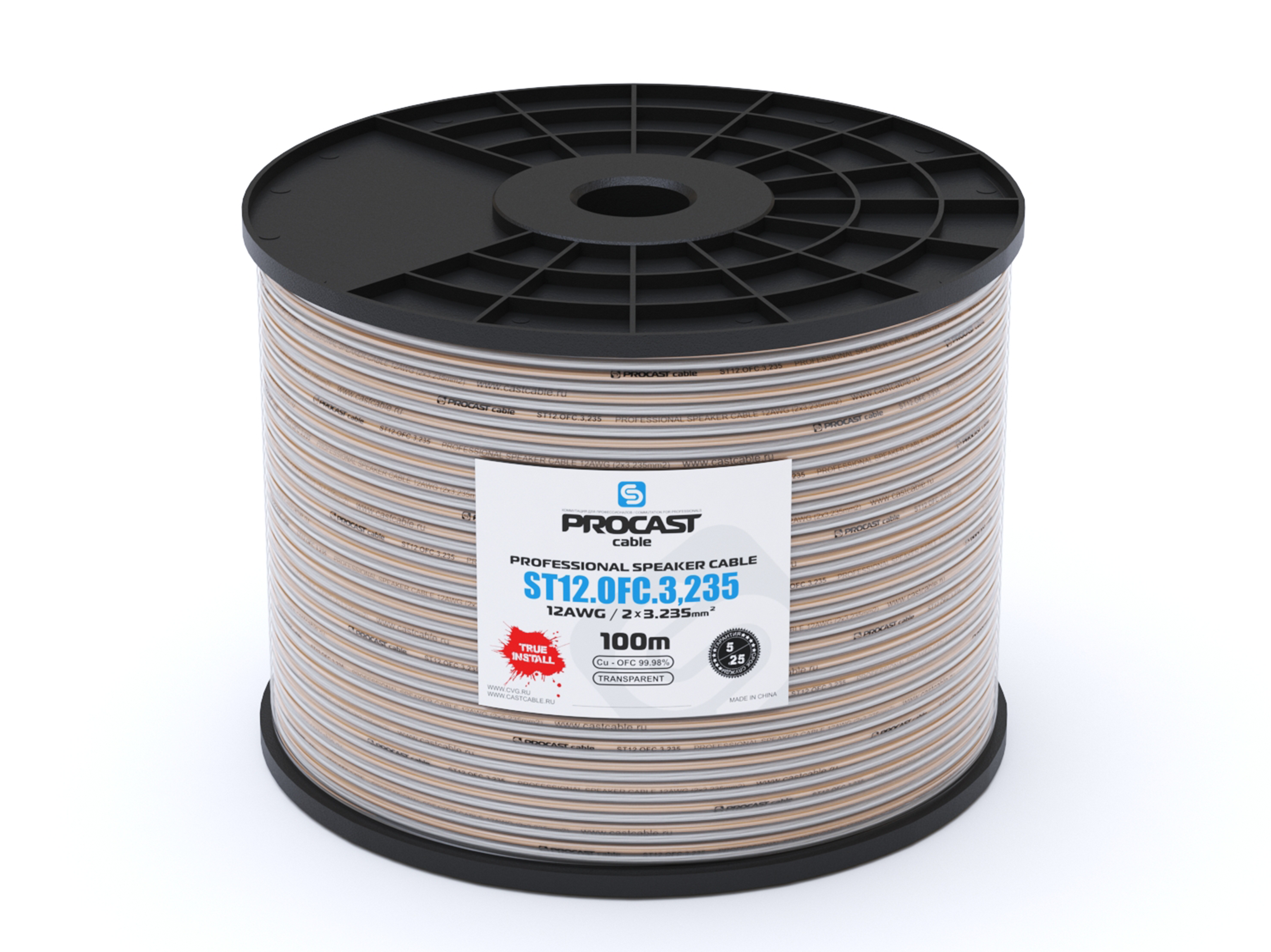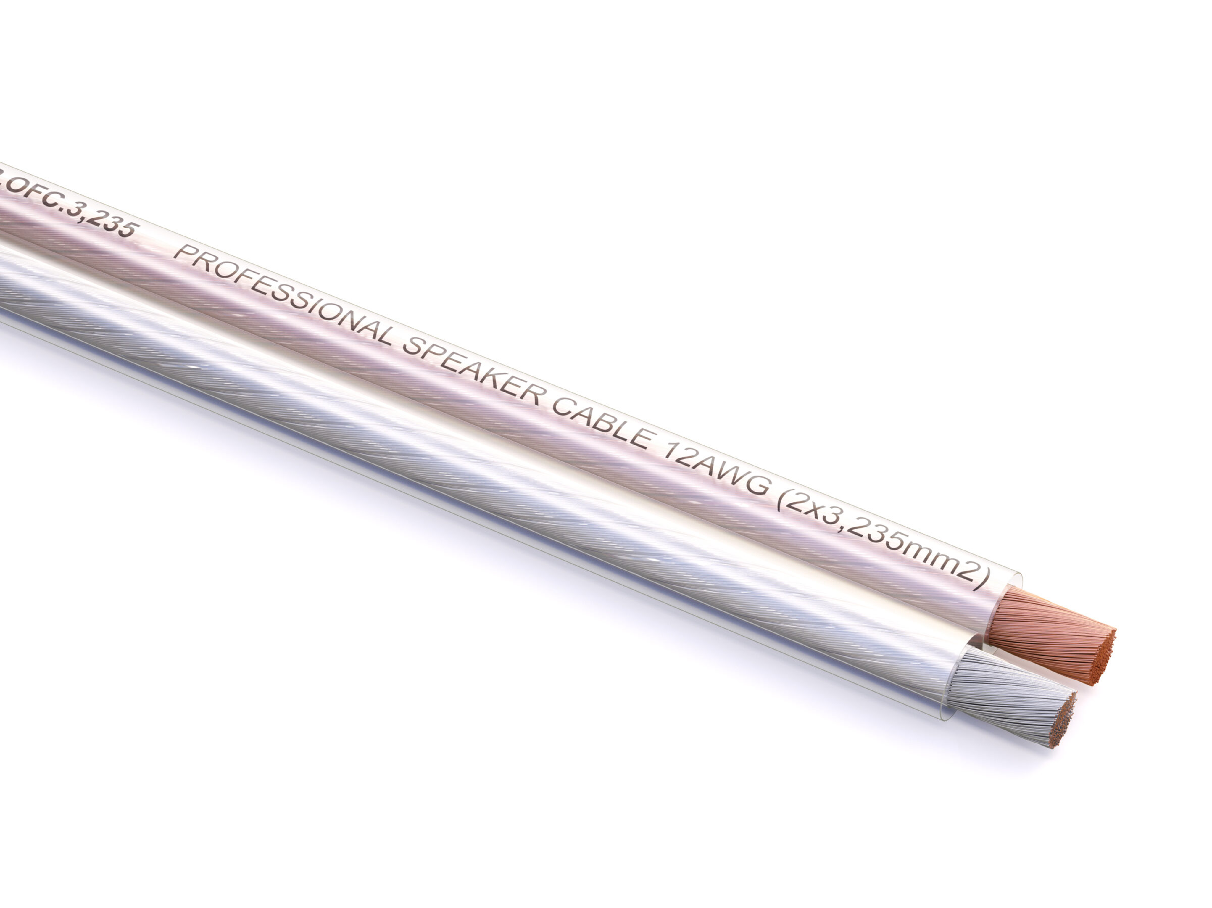 Профессиональный инсталляционный спикерный (акустический) кабель, 12AWG(2×3,235mm2), прозрачный, 7*23/0,16mm OFC (99,97%), бухта 100m