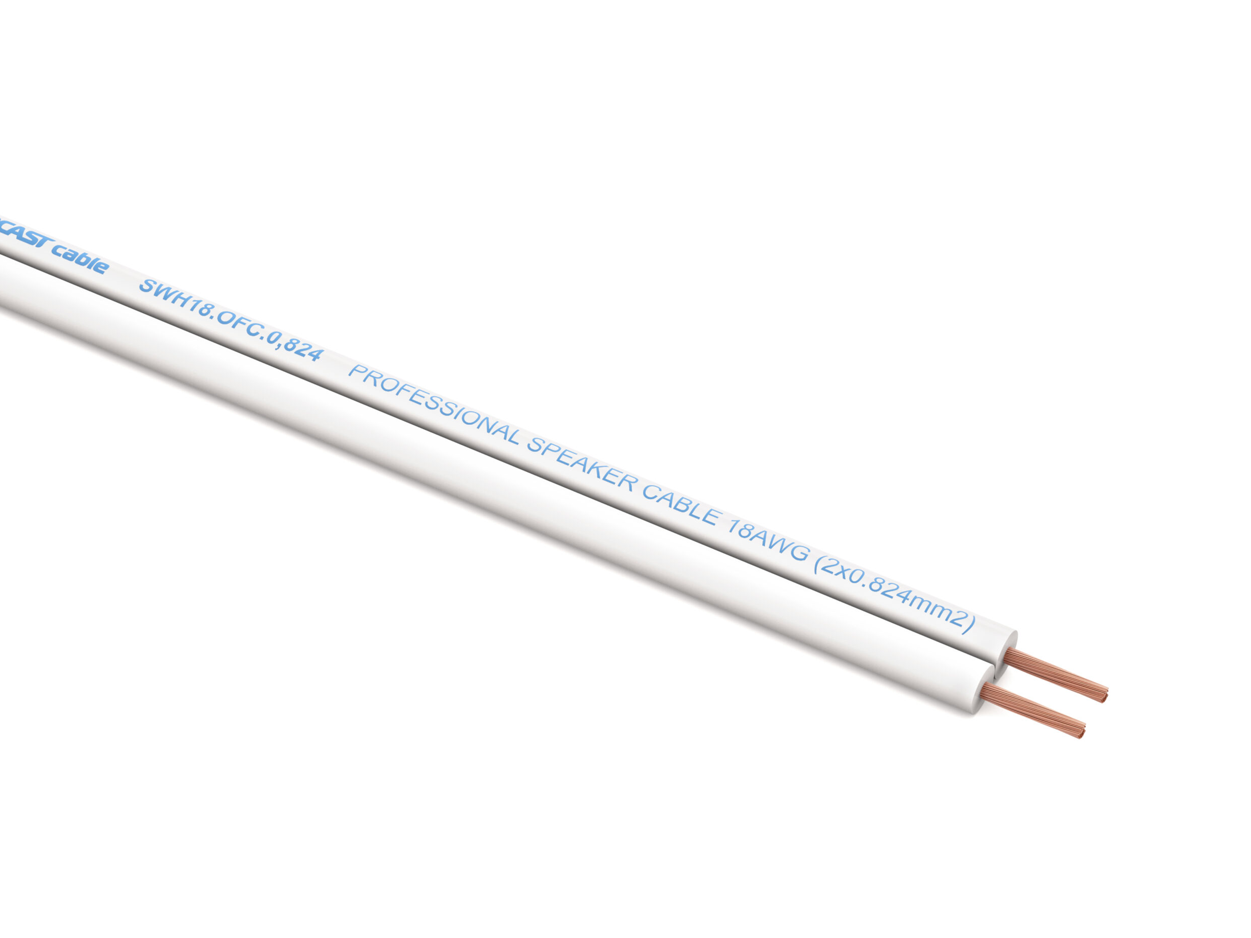 Профессиональный инсталляционный спикерный (акустический) кабель, 18AWG (2×0,824mm2), белый, 41/0,16mm OFC (99,97%), бухта 100m
