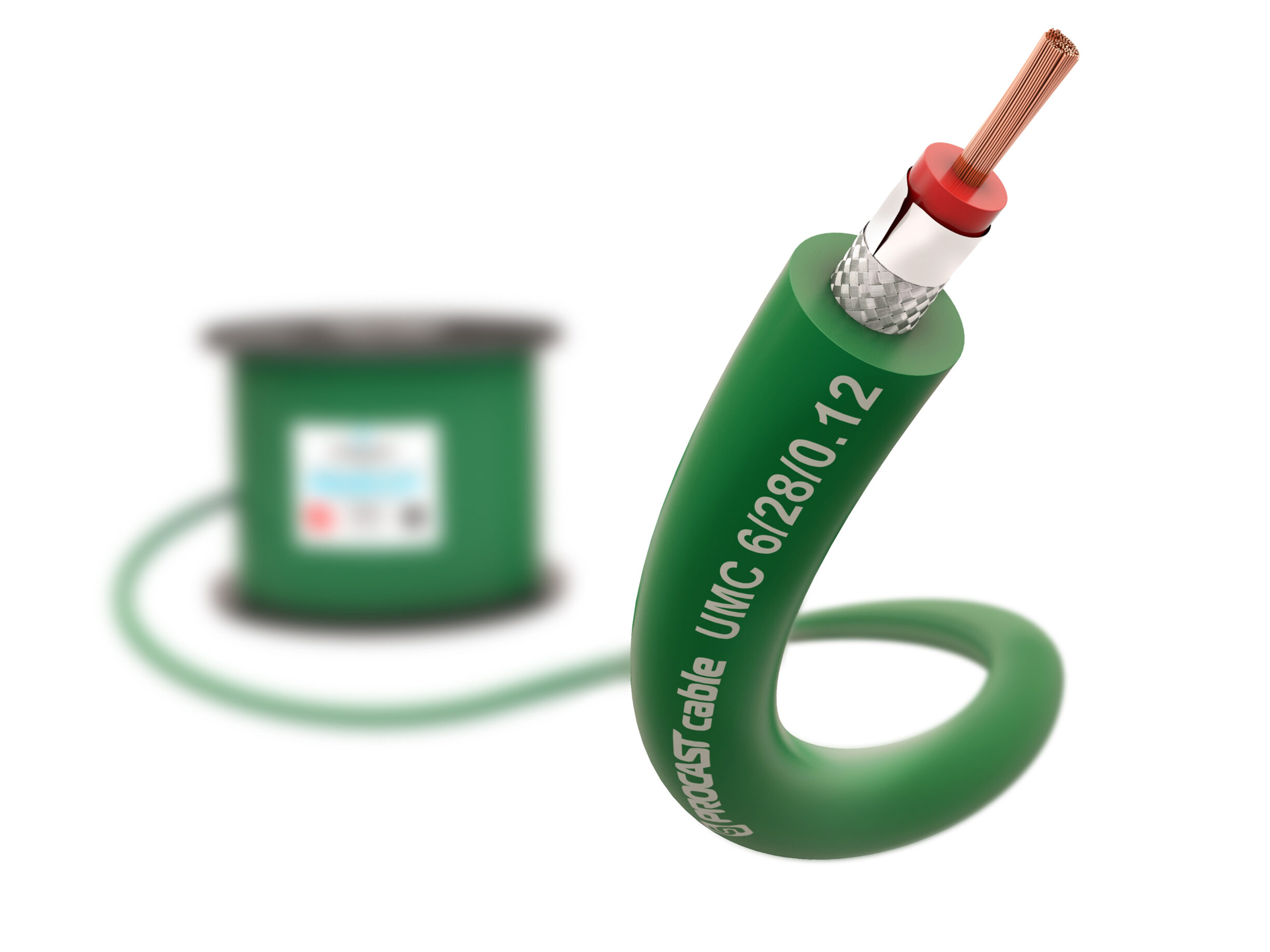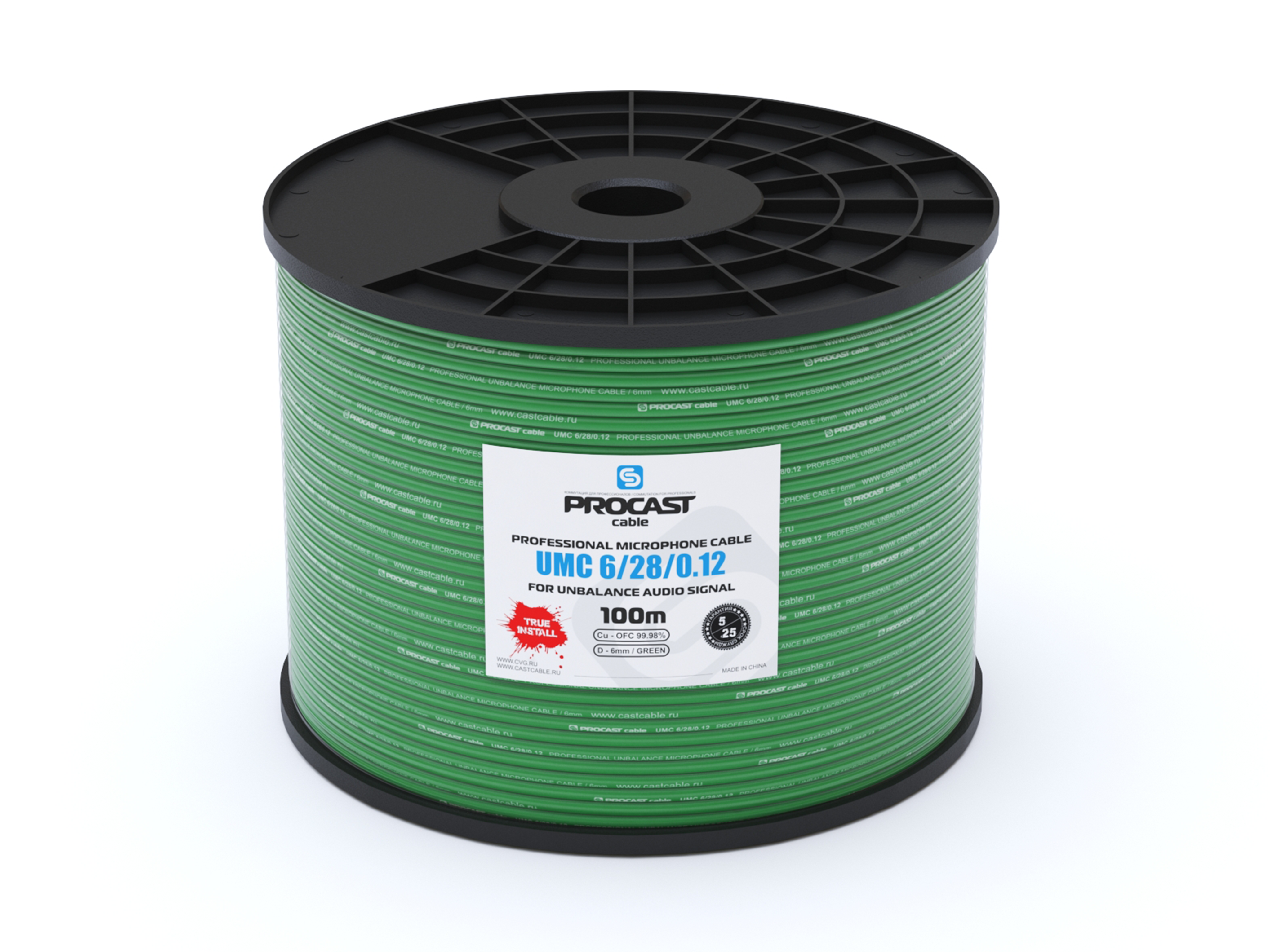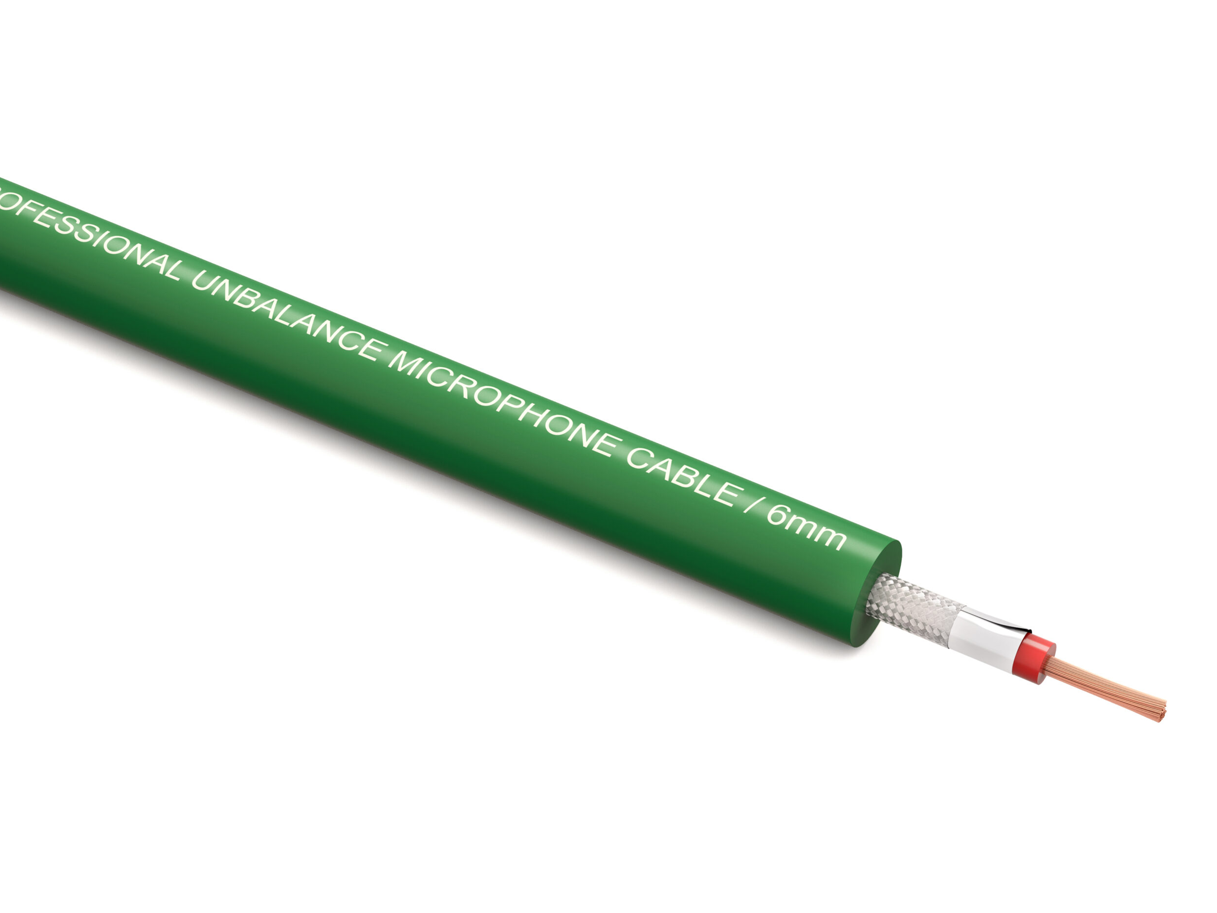 Профессиональный небалансный микрофонный (сигнальный) кабель, внешний диаметр 6mm, 28/0.12+PVC+AL-FOIL+BD16*7/0.12TC, зеленый, бухта 100m