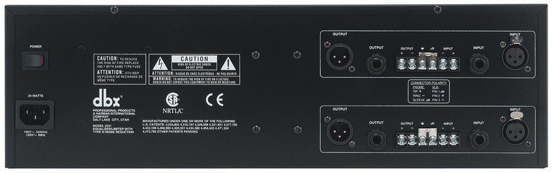 Двуканальный 1/3-октавный эквалайзер серии 20, во многом идентичной по параметрам легендарной в прошлом серии 30. Семейство эквалайзеров dbx серии 20 отличается наличием регулируемых патентованных лимитеров PeakPlus™ в каждом канале. Кроме того, имеется высокоэффективная система шумоподавления Type III™ на основе динамического фильтра, существенно снижающая шумы даже при экстремальных положениях движков. Предусмотрены отключаемые обрезные НЧ-фильтры, режим обхода и изменяемый диапазон регулировок в каждой полосе (±6 дБ/ ±15 дБ). Симметричные входы и выходы (XLR, 6.3 мм phono jack и зажимные винты).
