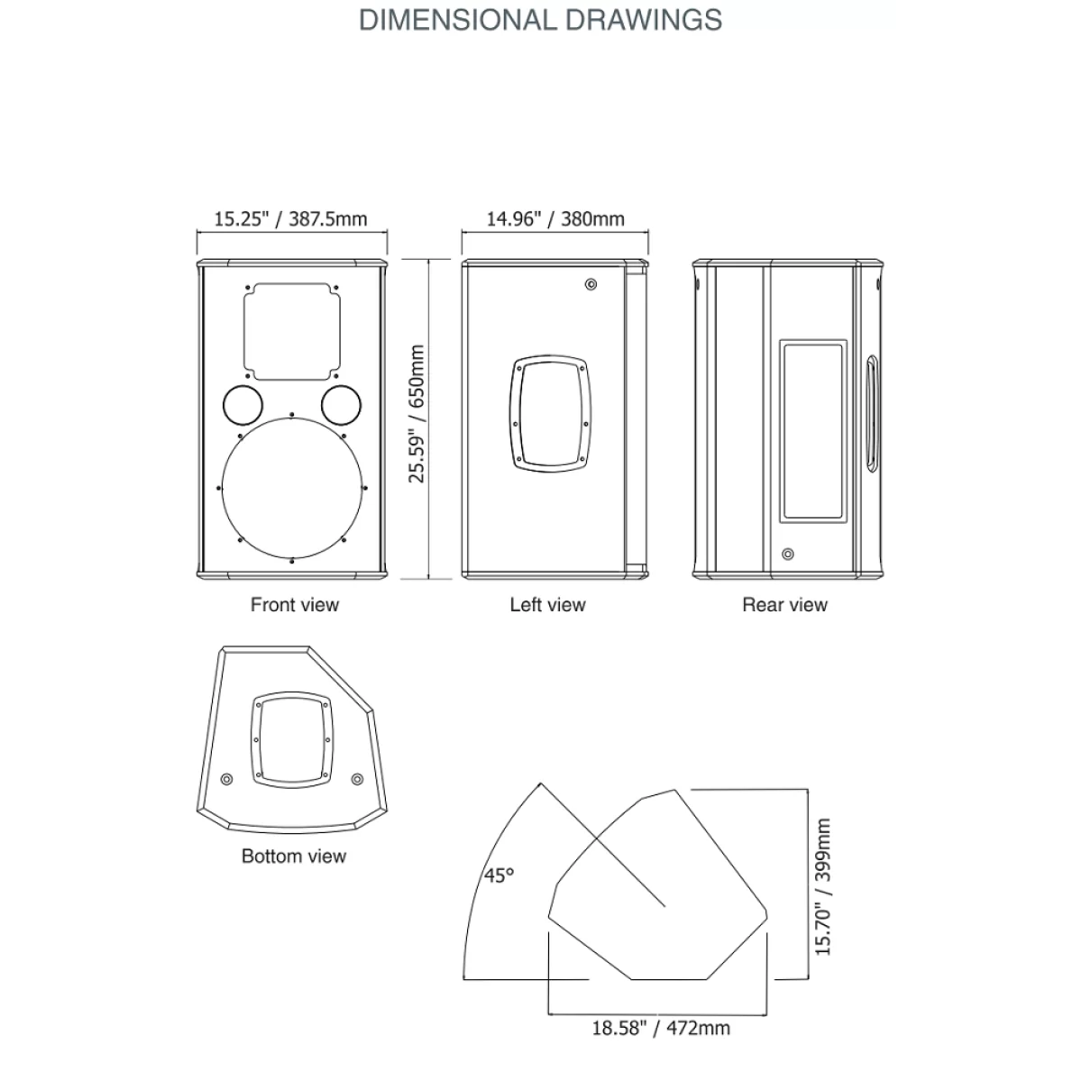 Встроенный пассивный кроссовер с защитой от резких перепадов напряжения для низкочастотного динамика и высокочастотного излучателя.Возможность полной подвески с помощью 6 точек крепления M10.